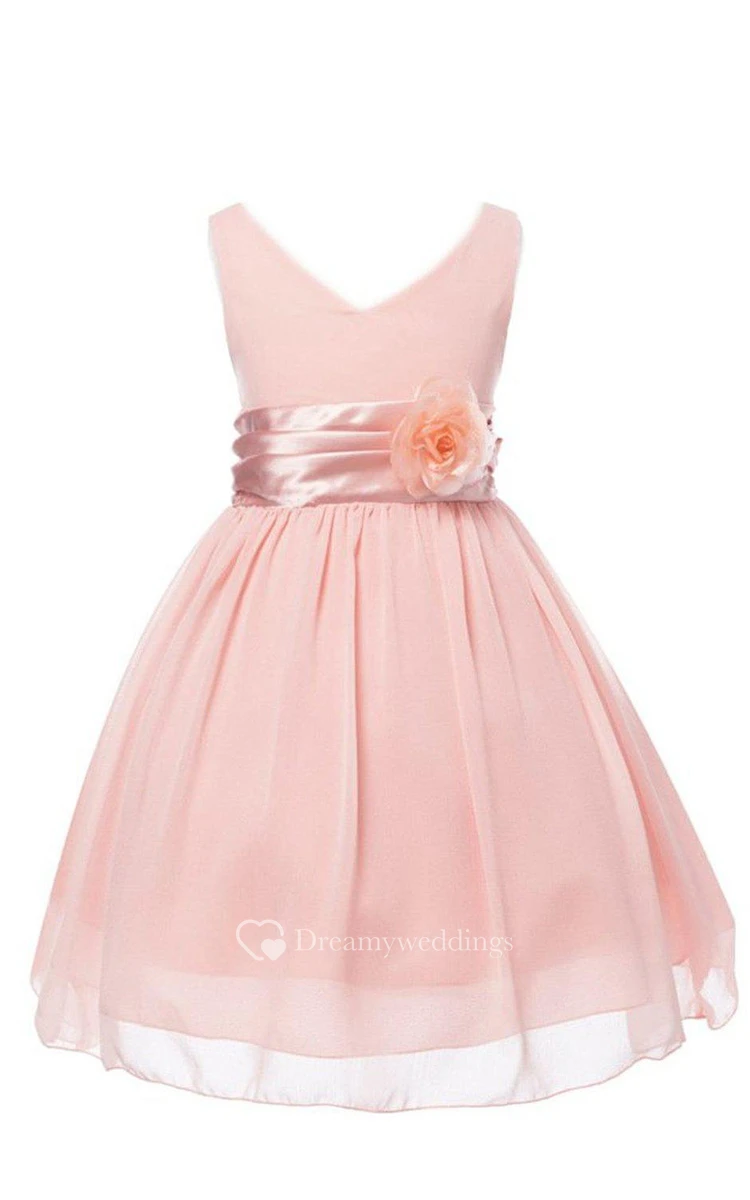 Sleeveless V-neck A-line Dress With Floral Waist