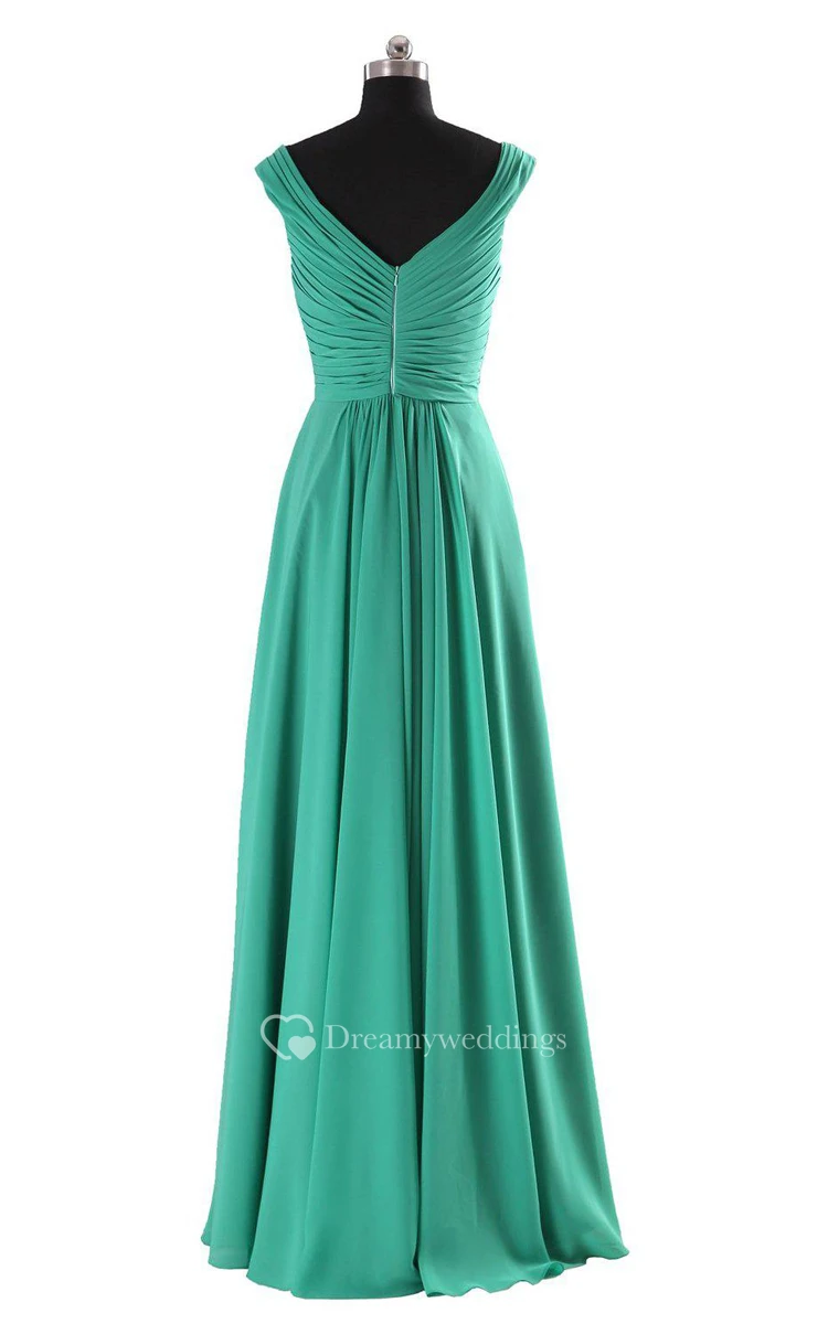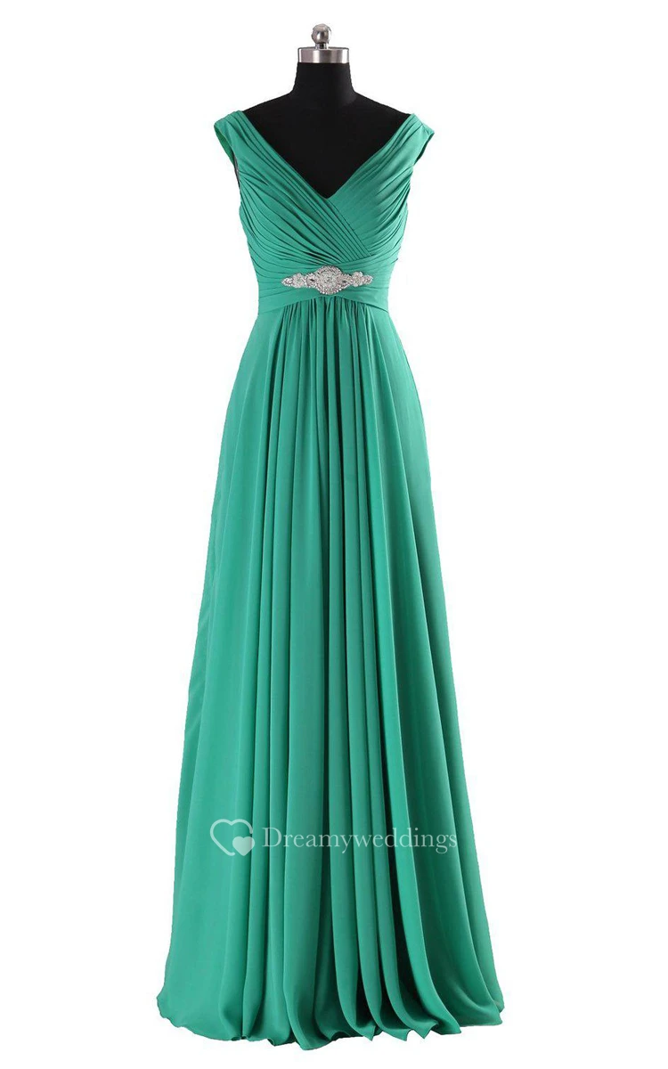 Sleeveless V-neck A-line Dress With Pleats and Beadings