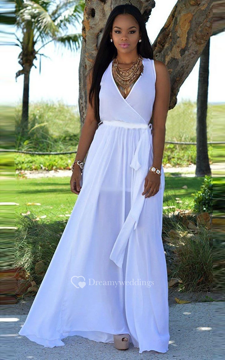 Sleeveless V-neck A-line Floor-length Chiffon Dress