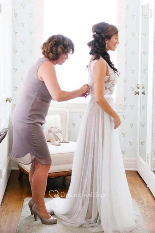After trying on several dresses nearly identical to this one at the big name bridal store and being discouraged at how expensive they were I decided to try this one. It was the best decision ever! Great quality dress that fits perfect. It has to be hemmed because I'm short but the alterations are easy to do and will not cost a fortune! I highly recommend this dress!