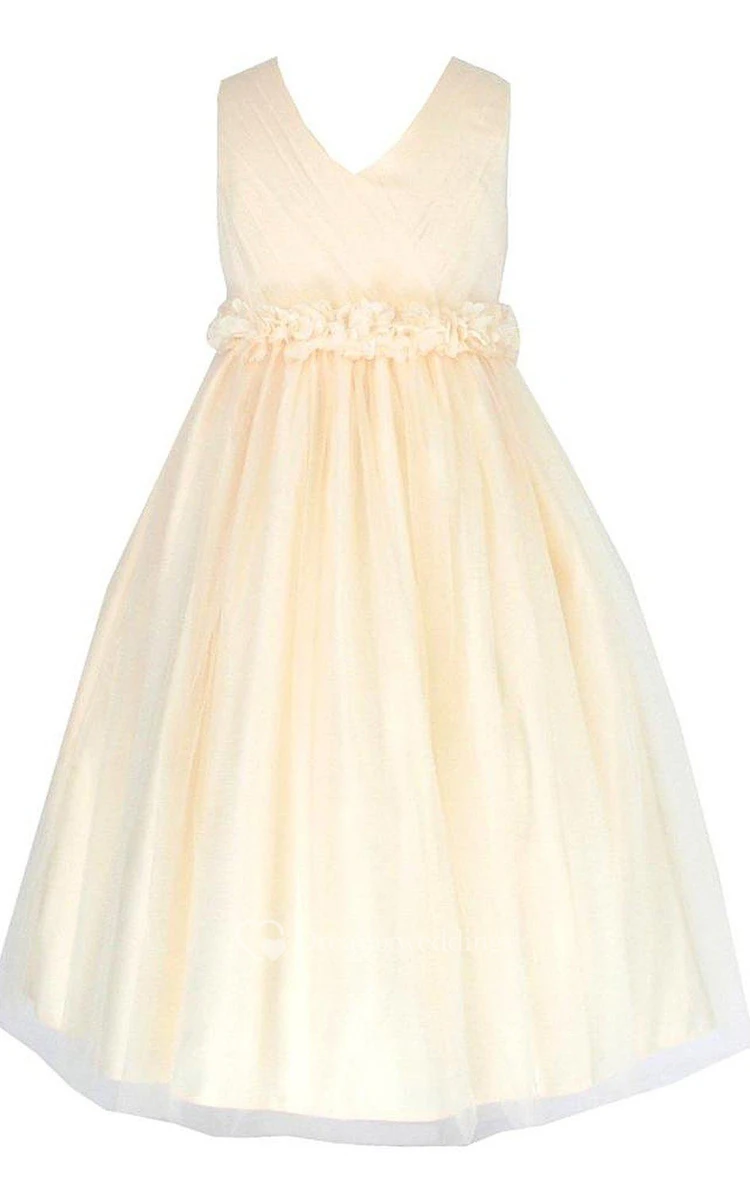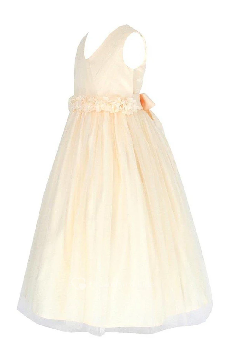 Sleeveless V-neck A-line Pleated Dress With Bow