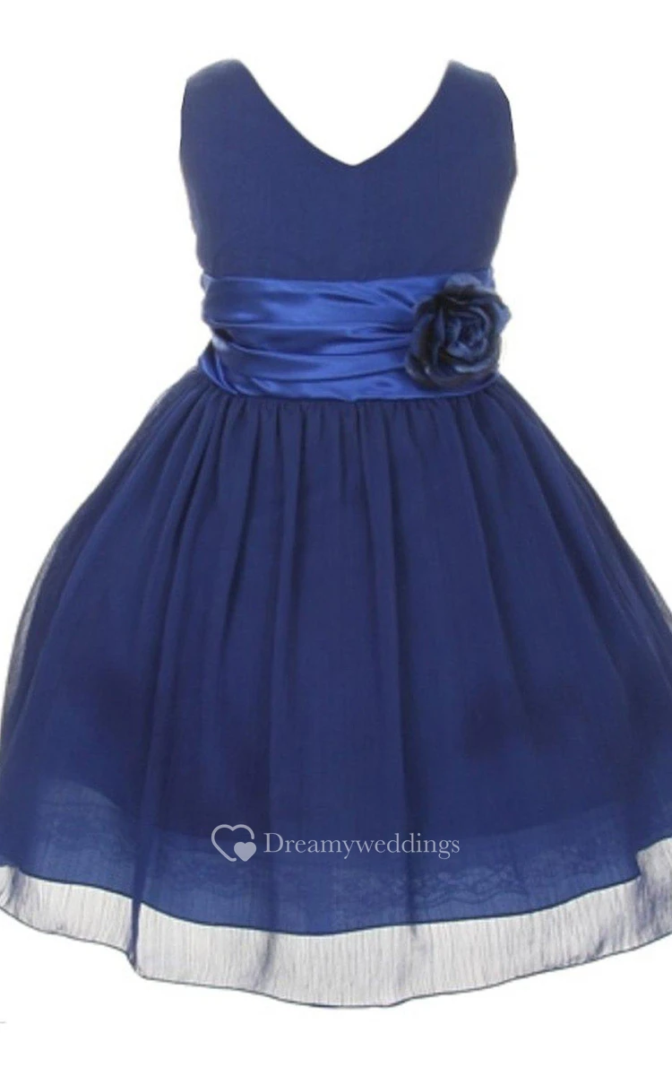 Sleeveless V-neck A-line Pleated Dress With Flower