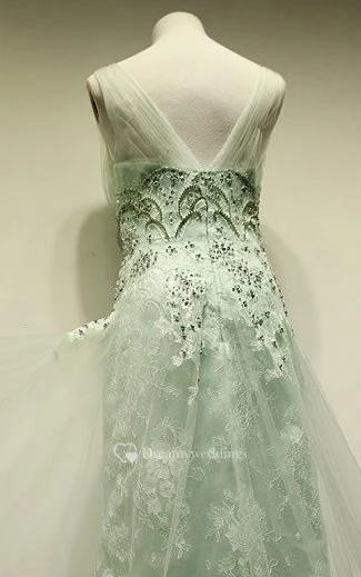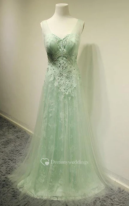 Sleeveless V-neck A-line Pleats Lace Tulle Dress
