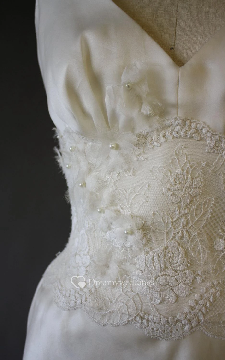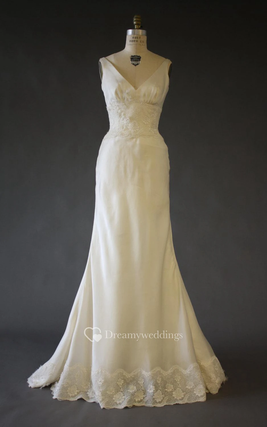 Sleeveless V-Neck A-Line Satin Dress With Lace Hemline