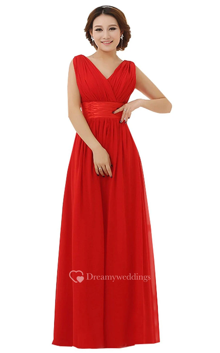 Sleeveless V-neck Empire Chiffon Dress With Pleats