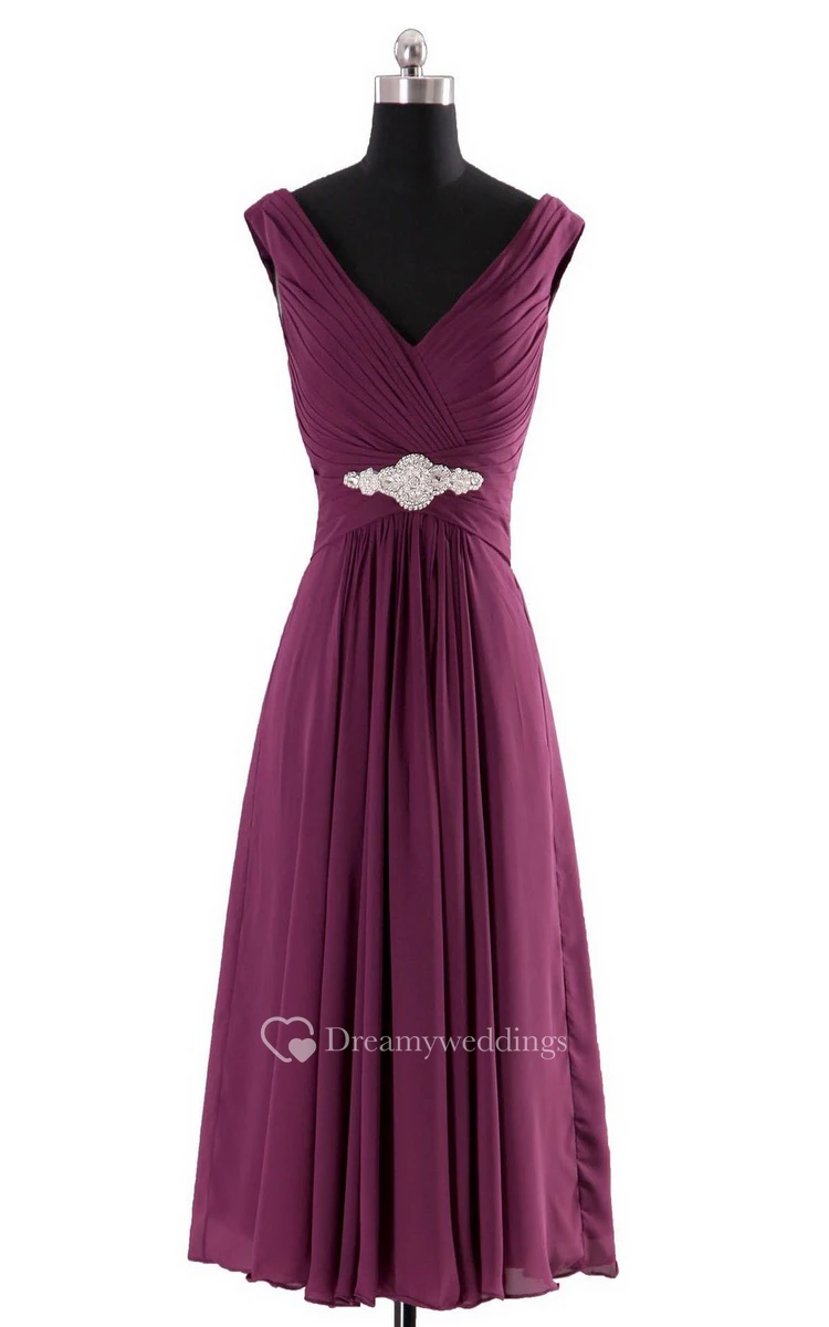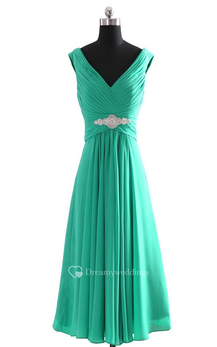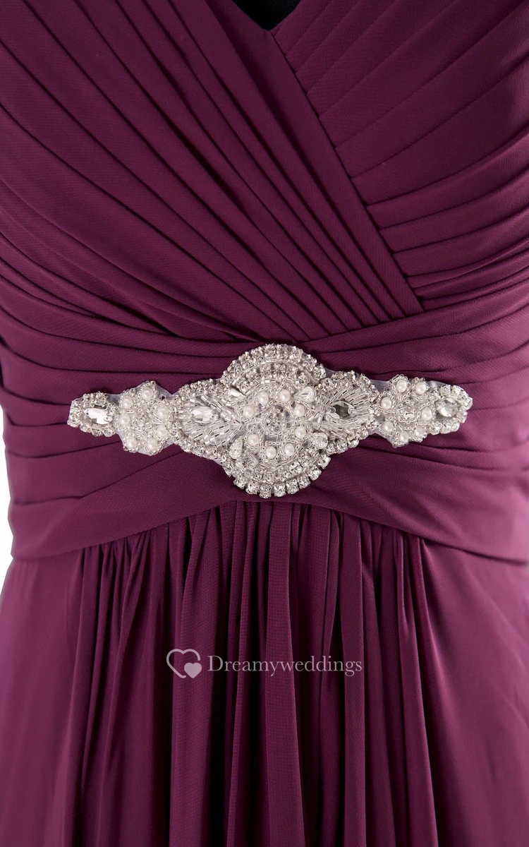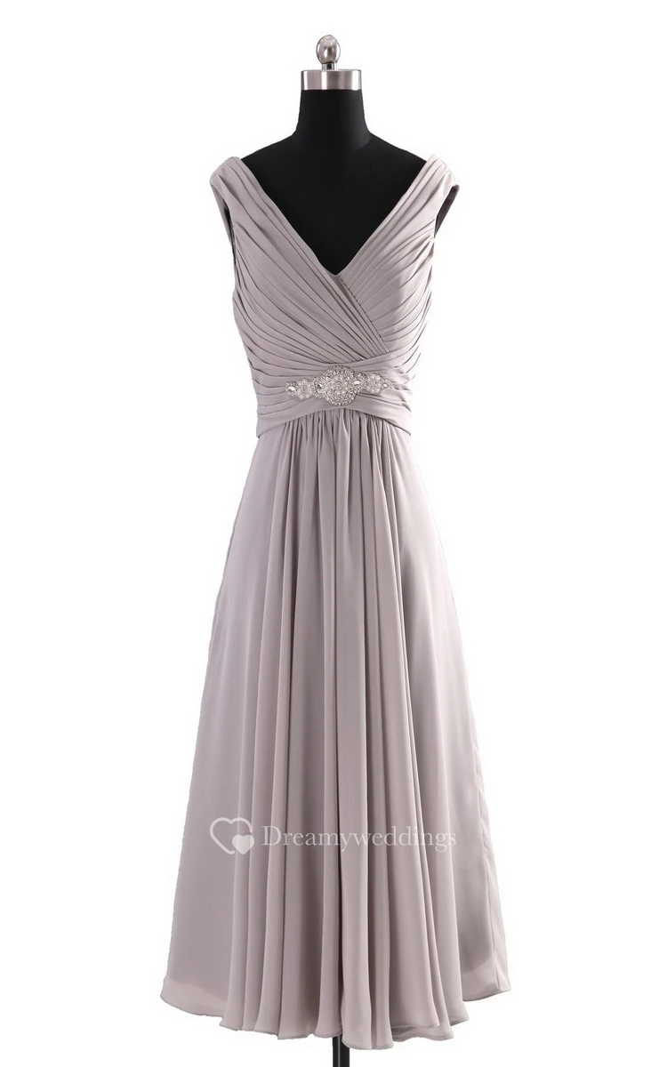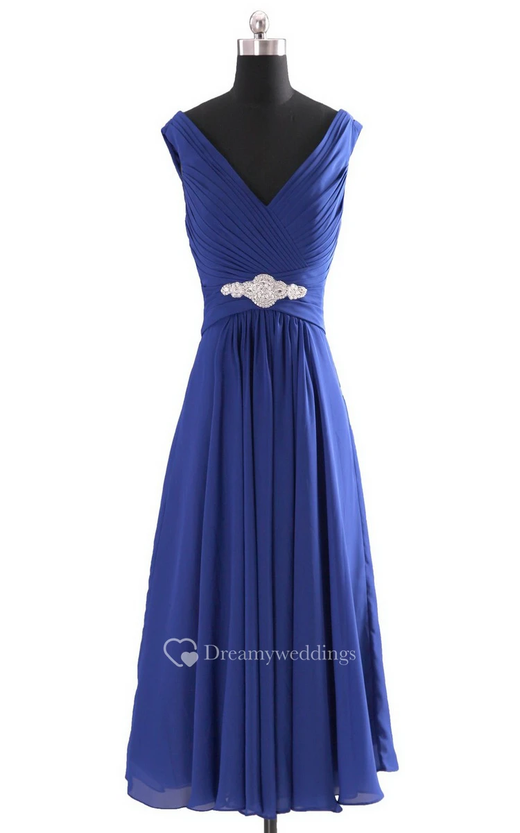 Sleeveless V-neck Empire Chiffon Dress With Ruffles