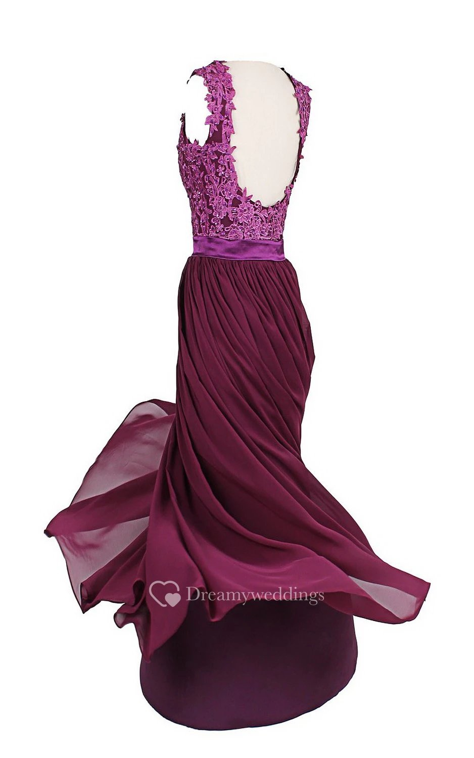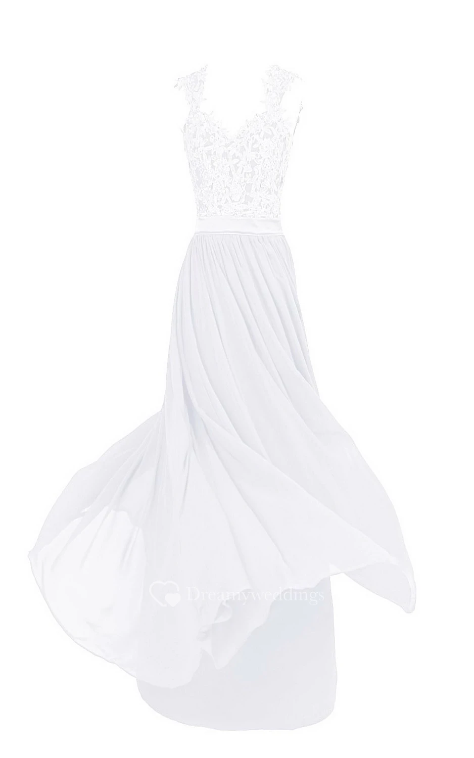 Sleeveless V-neck Lace Beaded Bodice Long Chiffon Dress