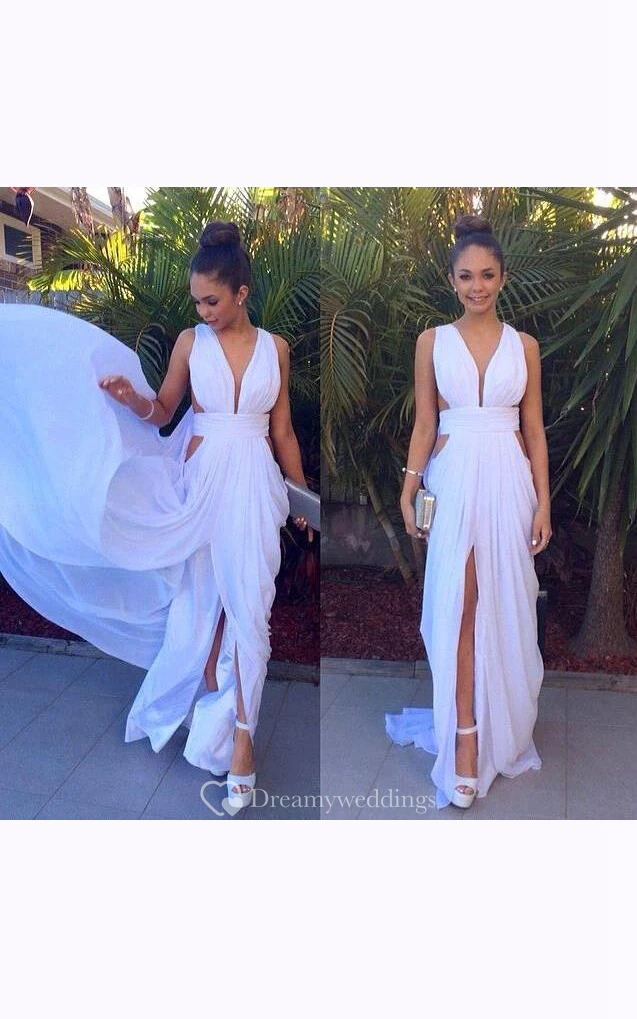Sleeveless V-neck Long Front Split Chiffon Dress