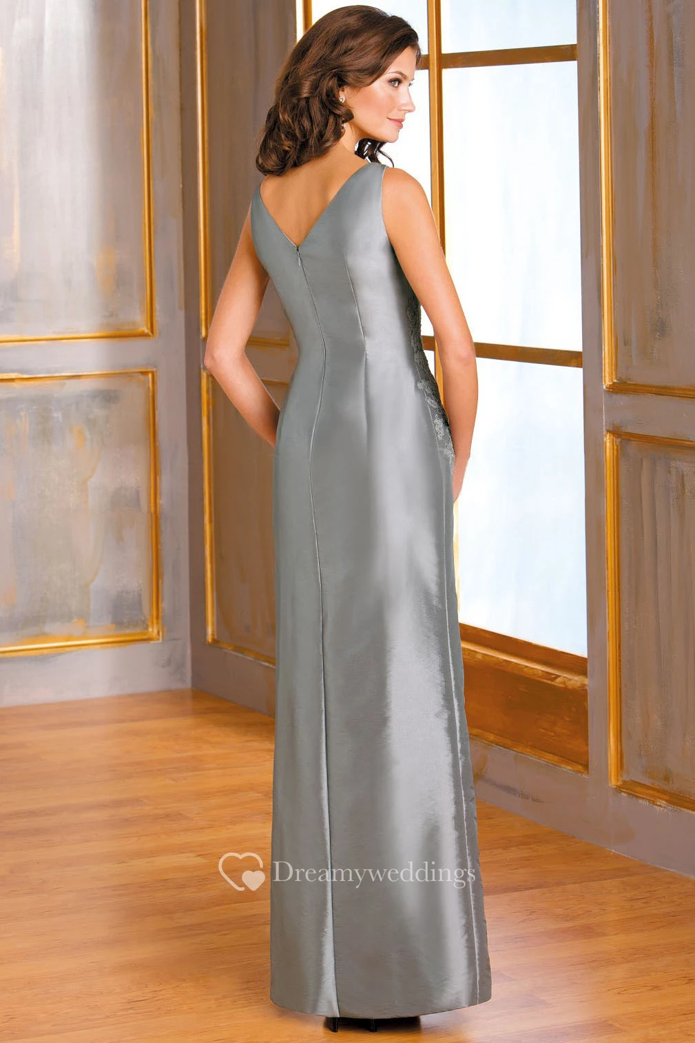 Sleeveless V-Neck Satin Mother Of The Bride Dress With Appliques And Jacket Style