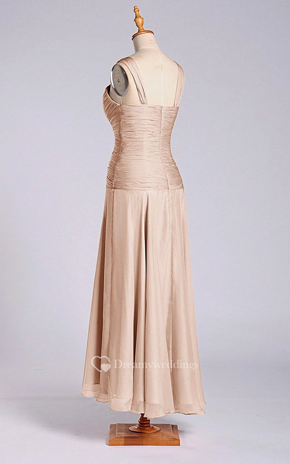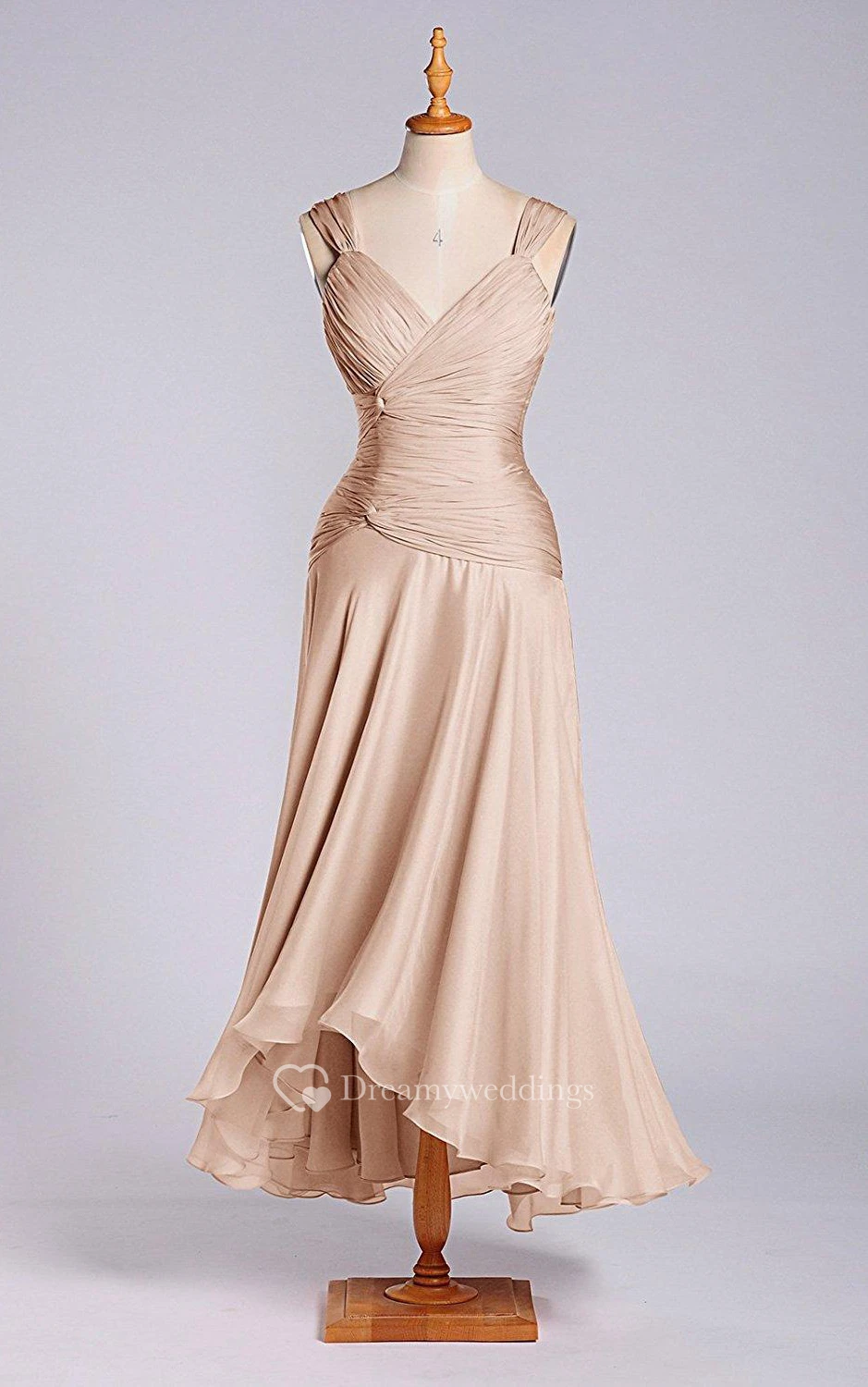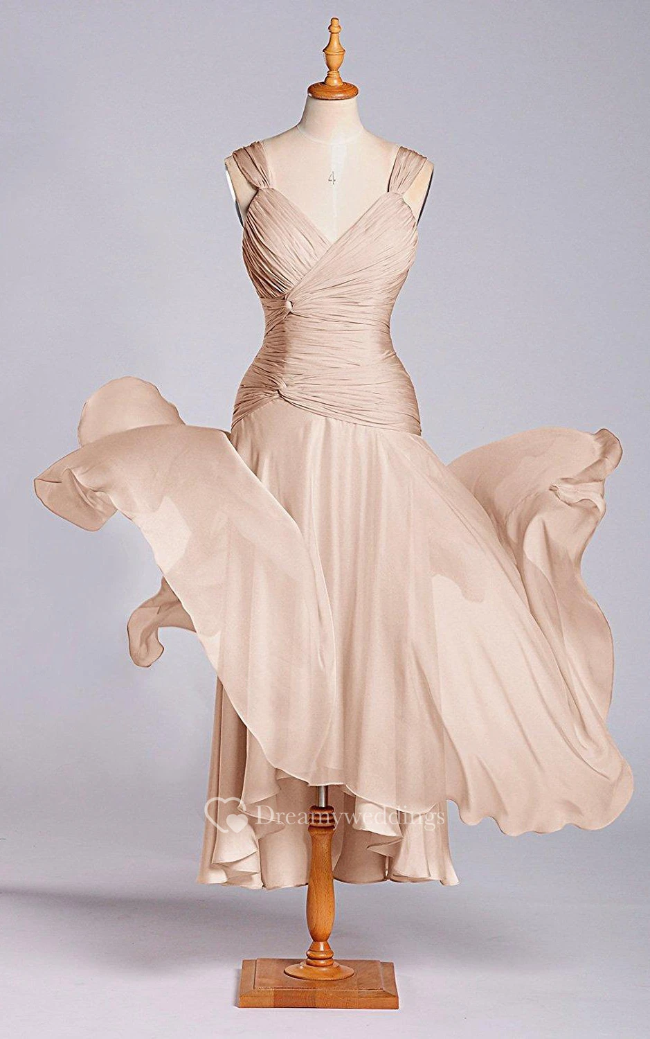 Sleeveless V-neck Tea-length Chiffon Dress with Ruching
