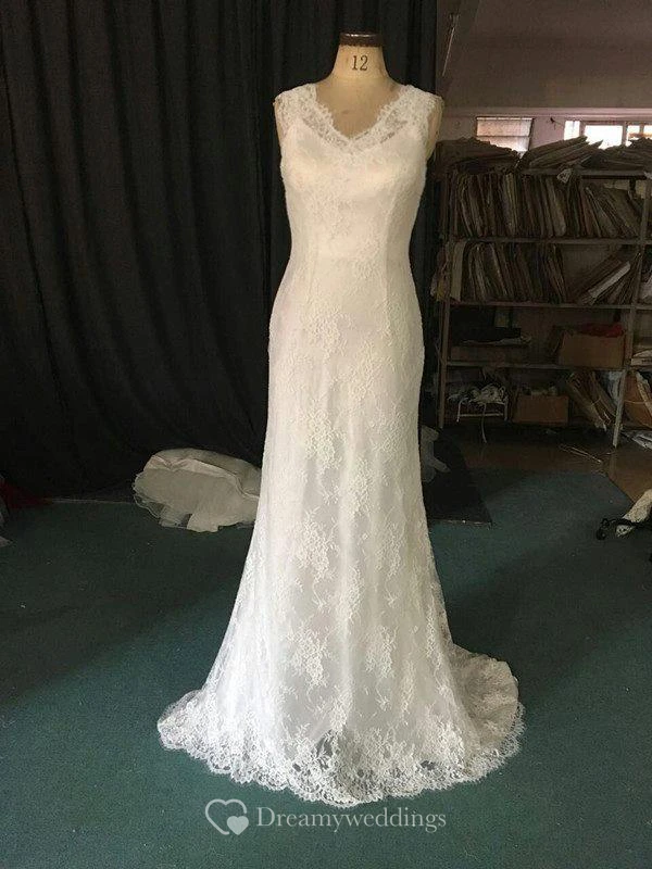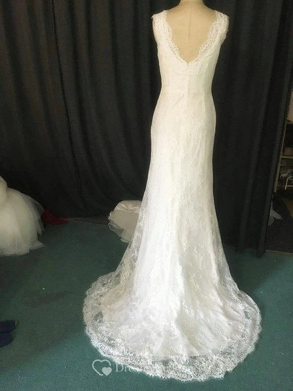 Sleeveless V-Neck Trumpet Lace Dress With Satin Underlay