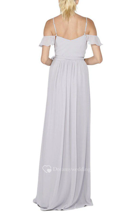 Spagetti Straps Falbala Off-the-shoulder Wrap Chiffon Dress