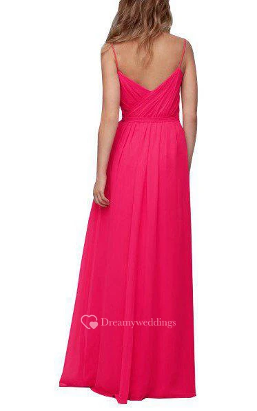 Spagetti Straps Ruched Wrap Floor-length Bridesmaid Dress