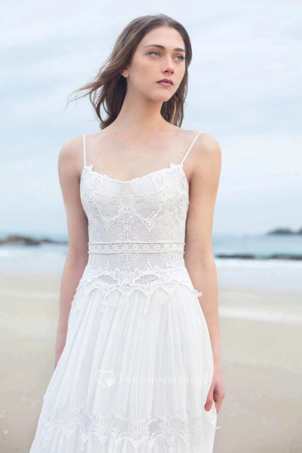 Spaghetti Sleeveless Chiffon Beach Boho Wedding Dress