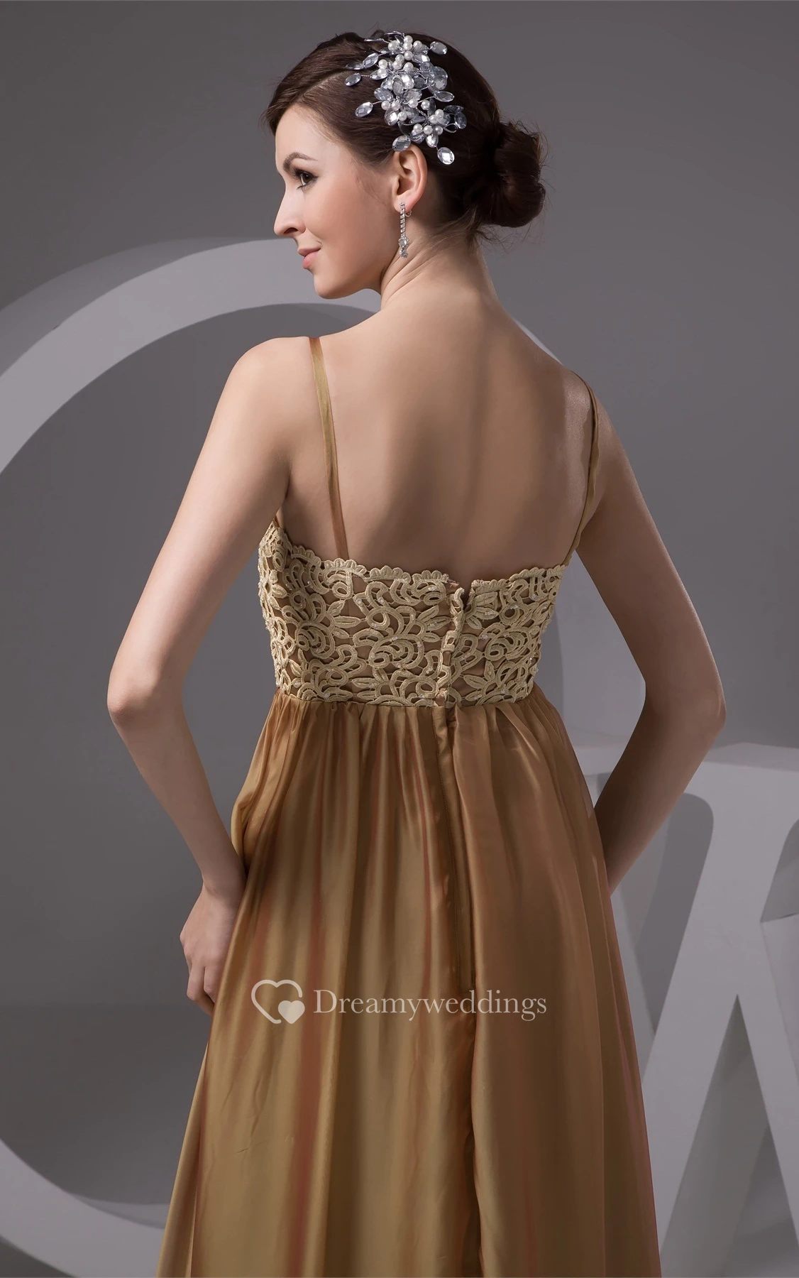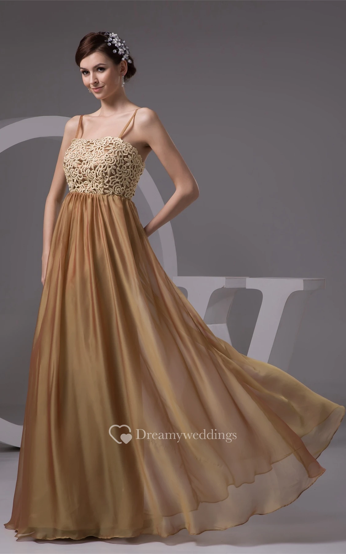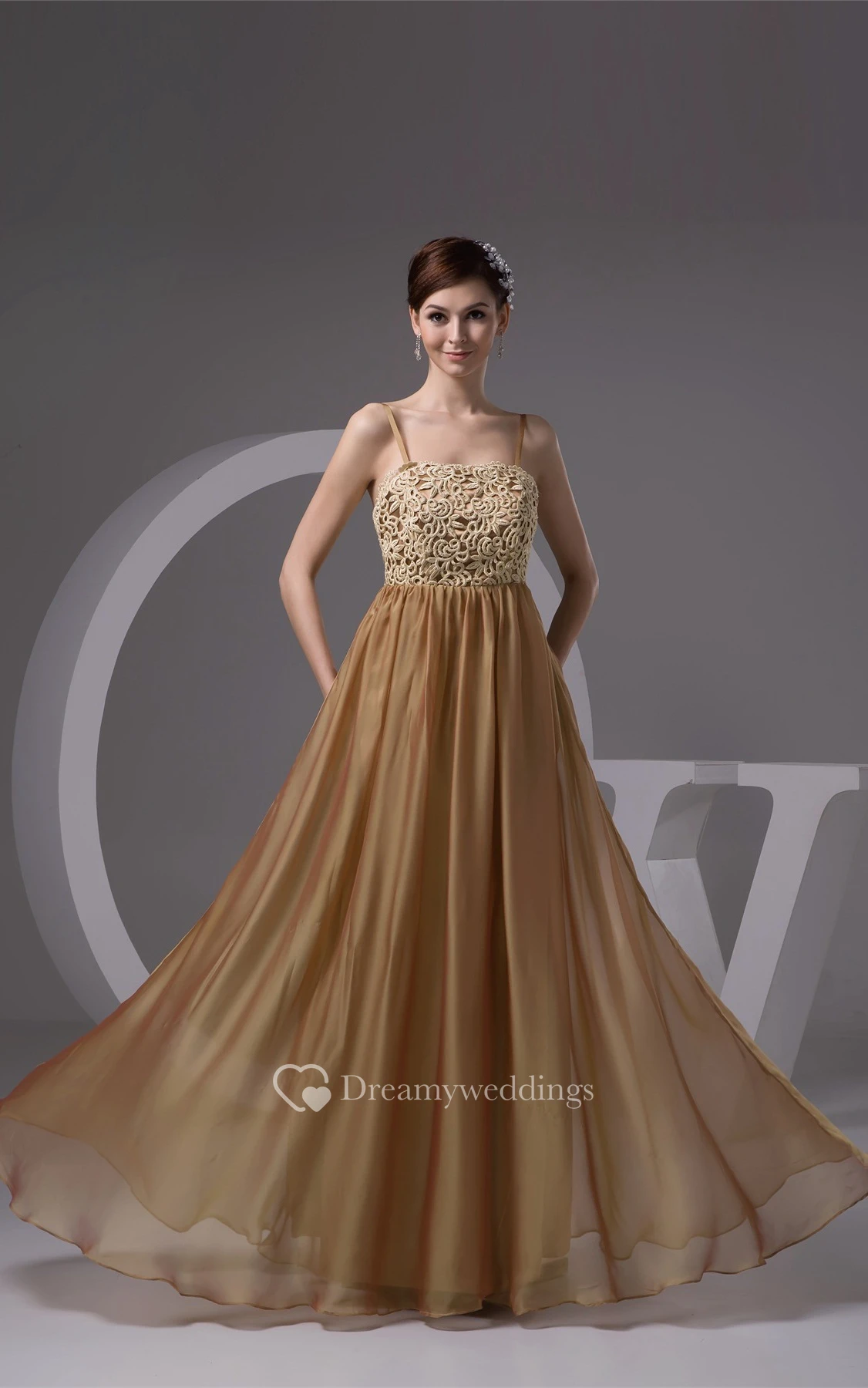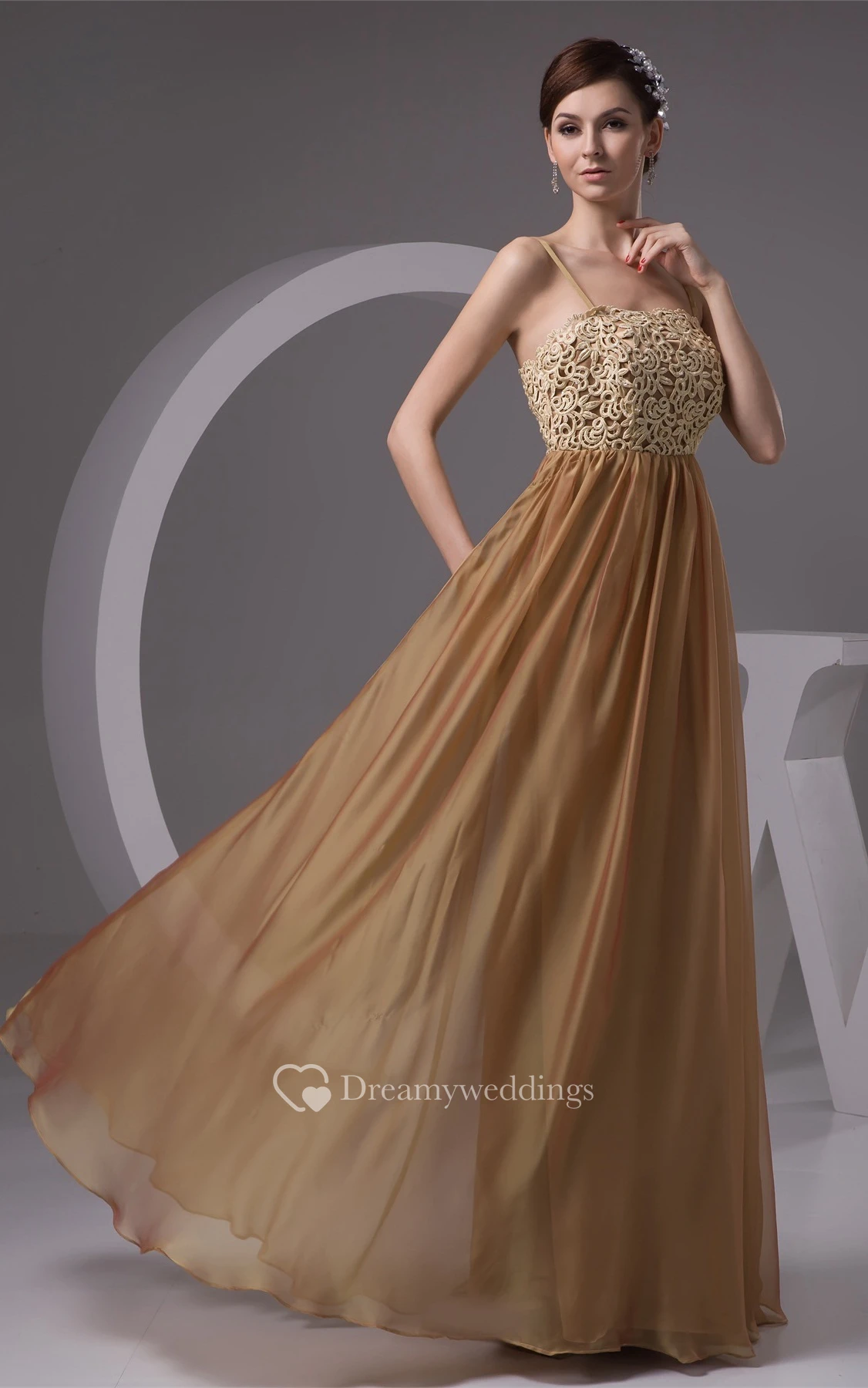 Spaghetti-Strap Maxi Lace and Gown With Pleats