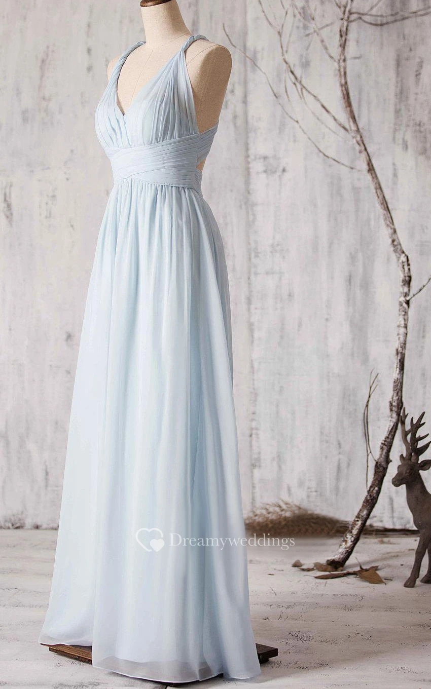 Spaghetti Straps Allover Pleated A-line Chiffon Long Dress Criss-cross Back