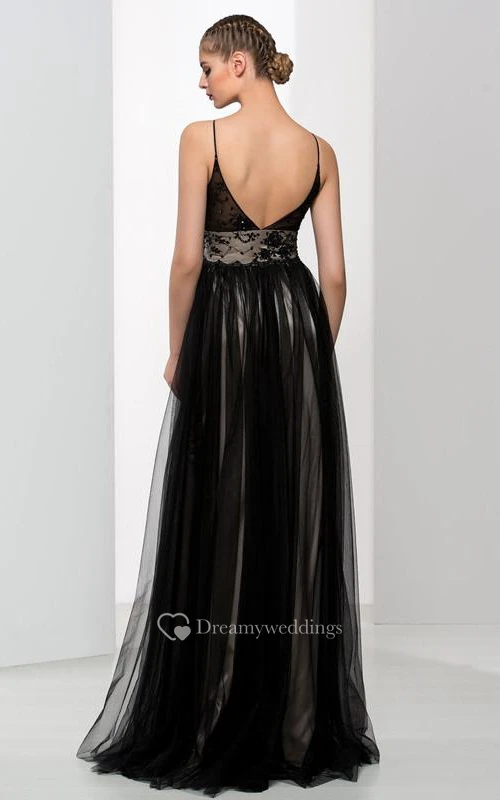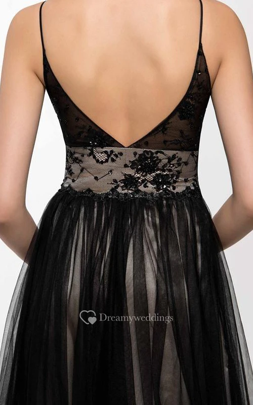 Spaghetti Straps Beading Backless Lace Prom Dress