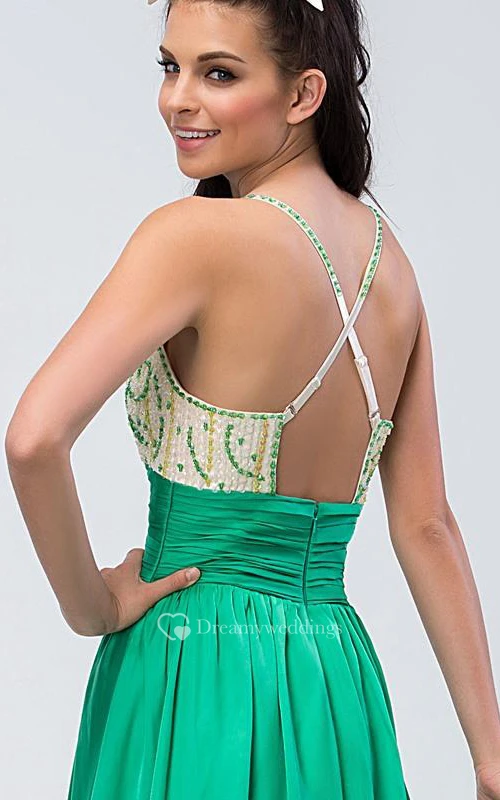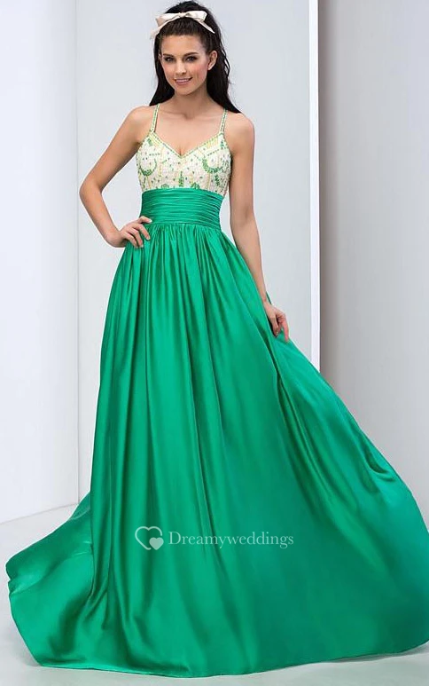 Spaghetti Straps Criss-cross Beading Long Prom Dress