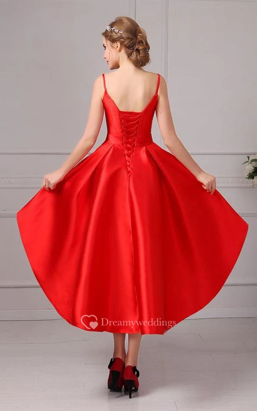 Spaghetti Straps Lace-Up Asymmetrical Prom Dress