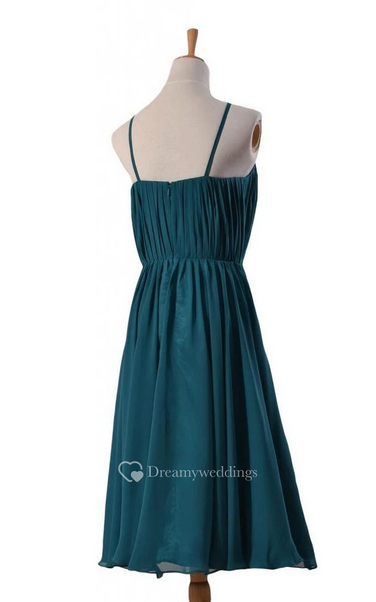 Spaghetti Straps Notched Pleated Chiffon Short Dress