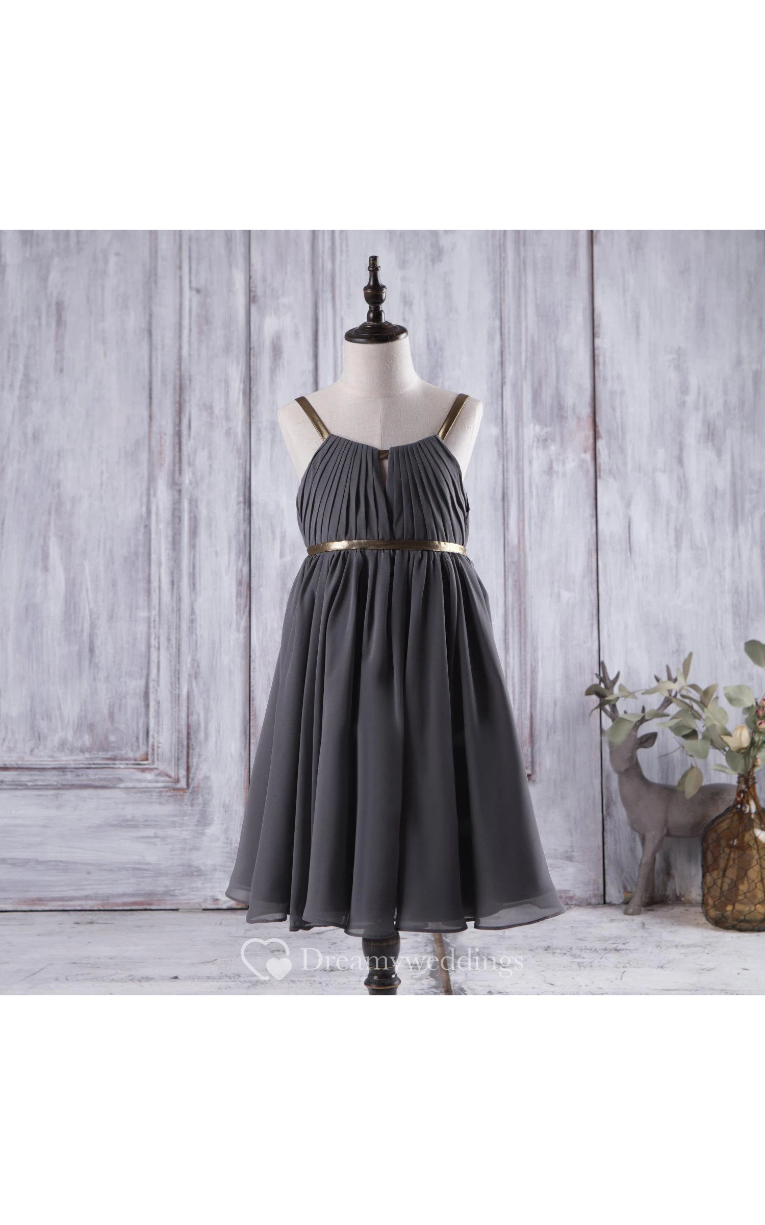 Spaghetti Straps Pleated Chiffon Long Dress With V Back and Keyhole