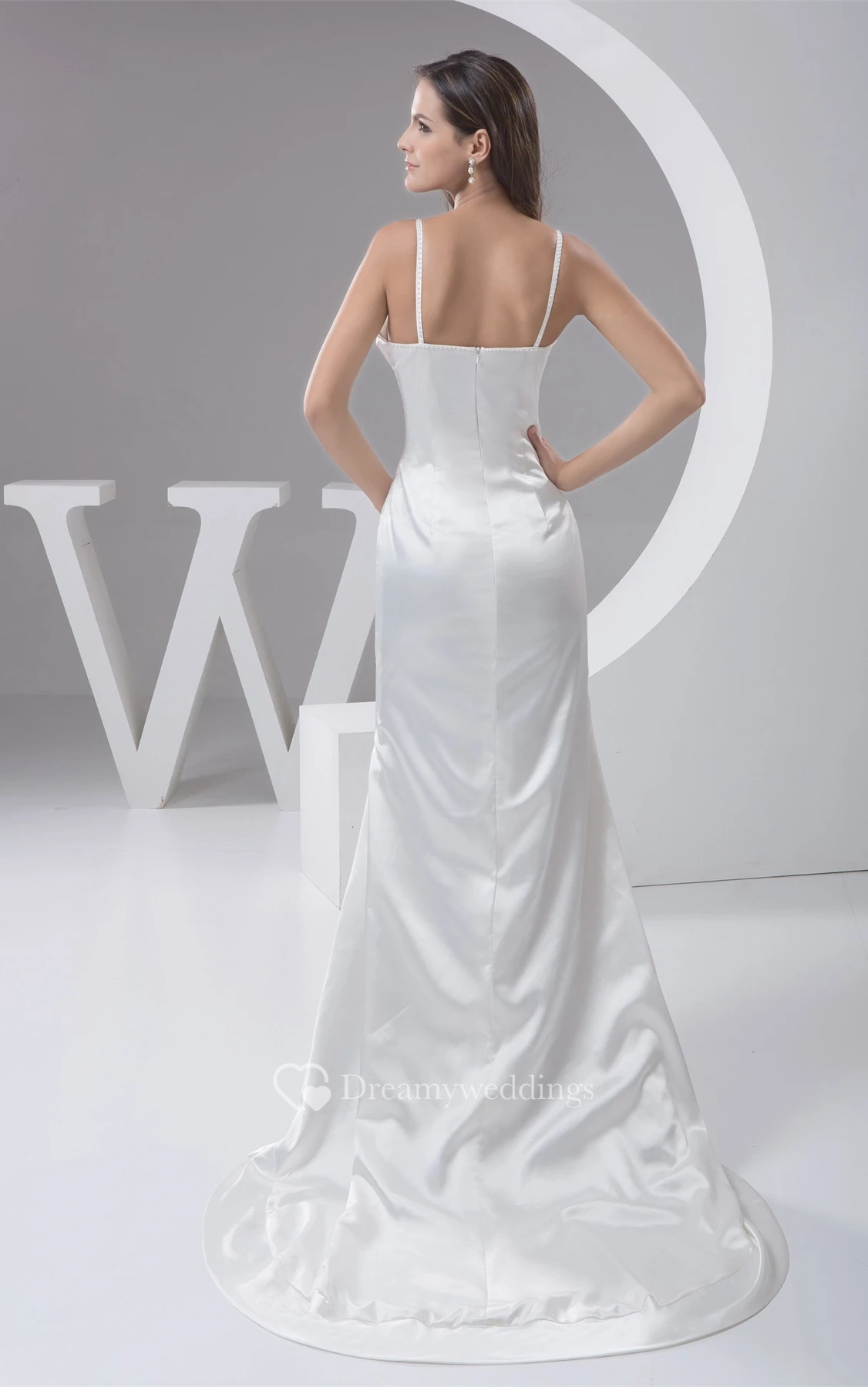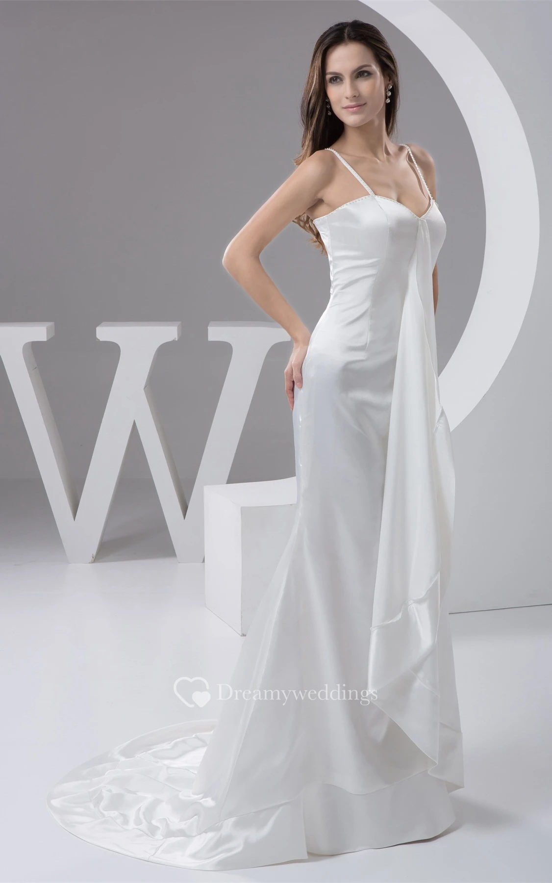 Spaghetti-Straps Sheath Satin Brush Train and Dress With Draping