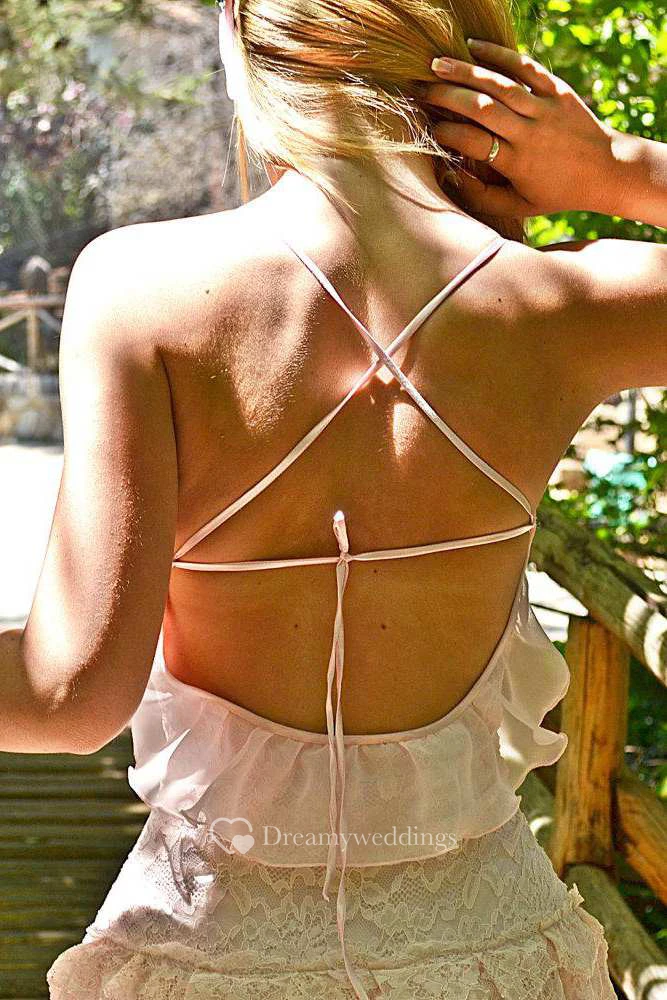 Spaghetti Tired Lace Vintage Wedding Dress With Sweep Train