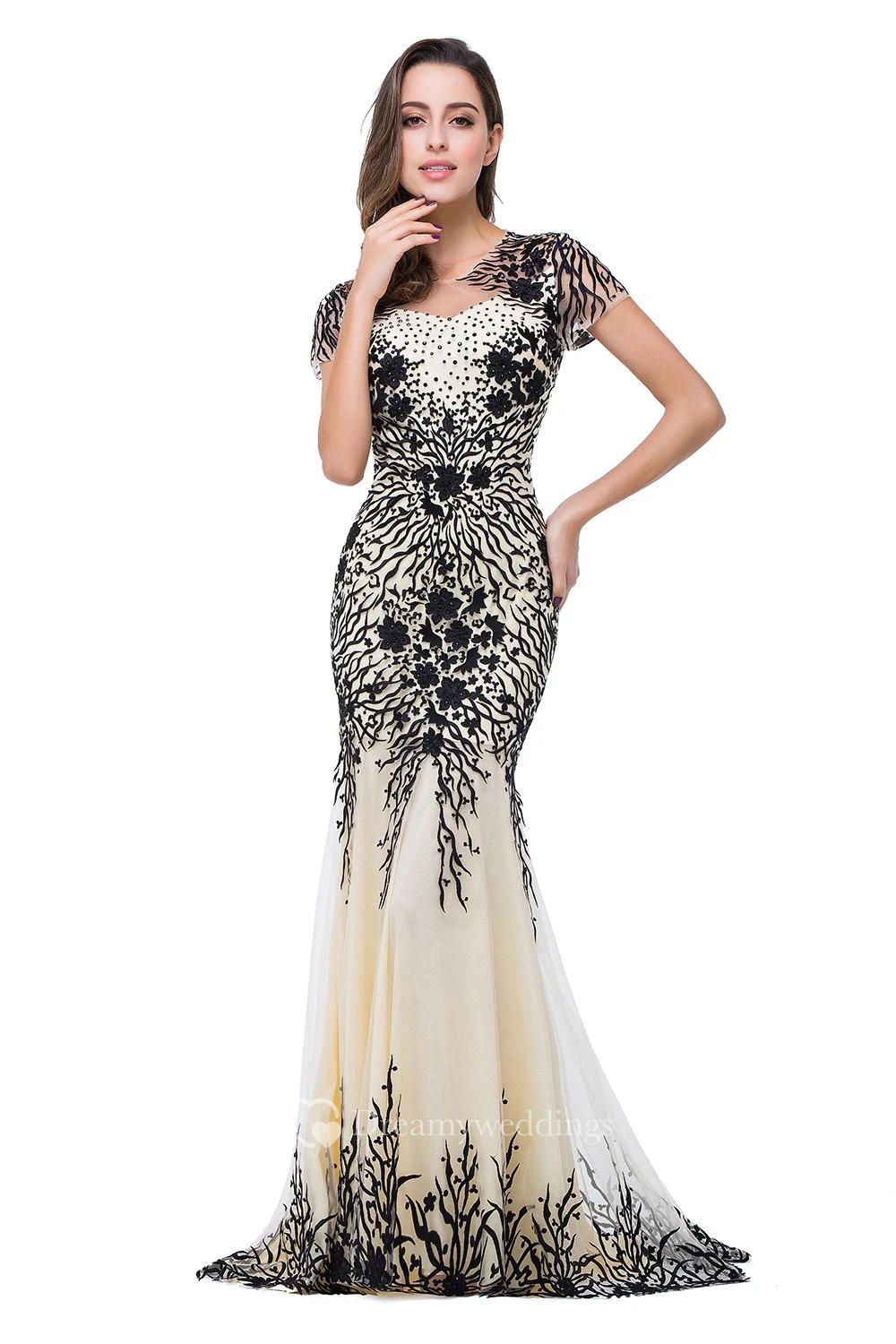 Sparkly Cap Sleeve Mother of the Bride Dress Appliques Mermaid Evening Gown