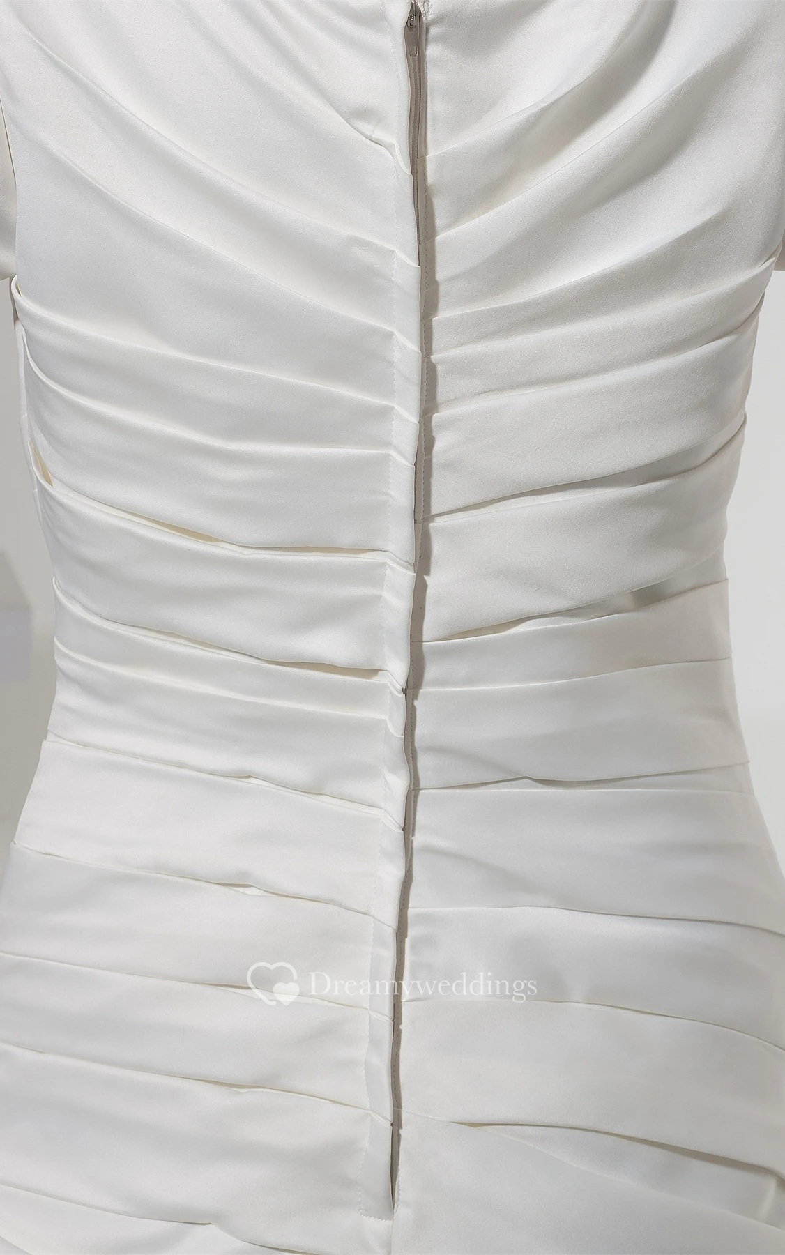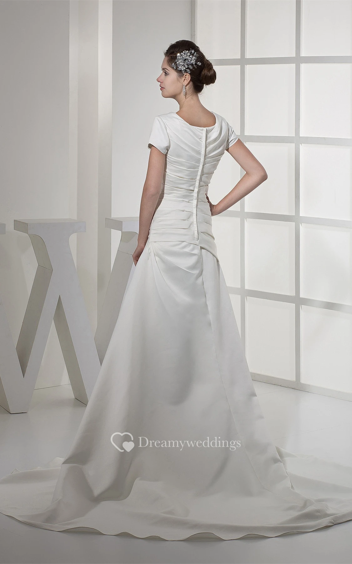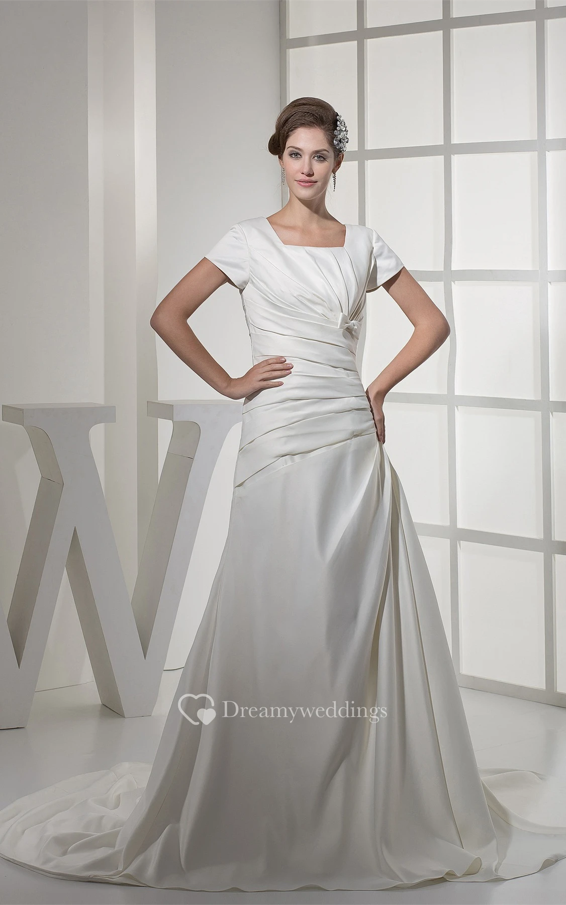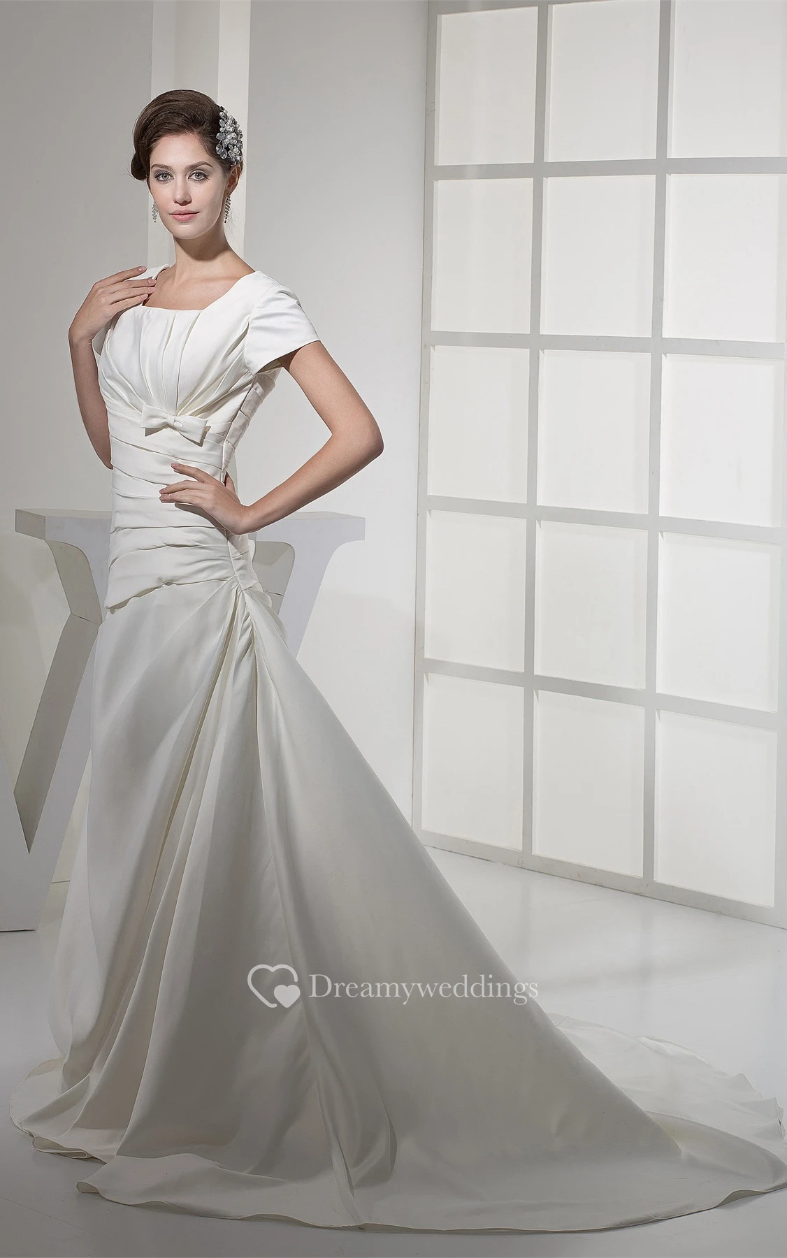 Square-Neck A-Line Caped-Sleeve Bow and Gown With Ruching