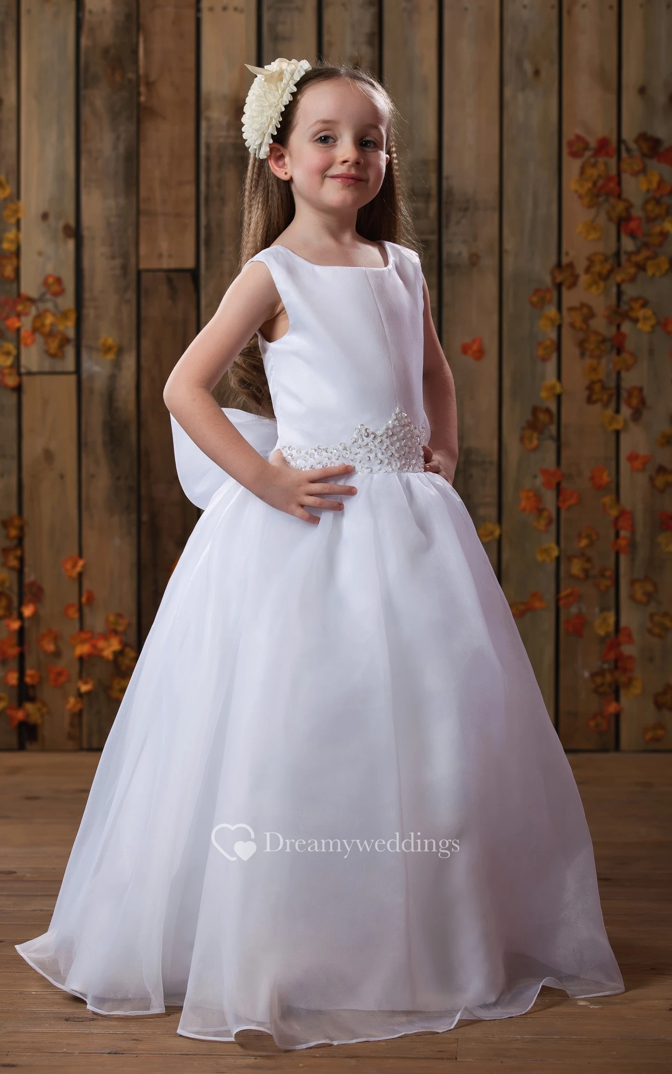 Square-Neck Beaded A-Line Flower Girl Dress With Bowknot