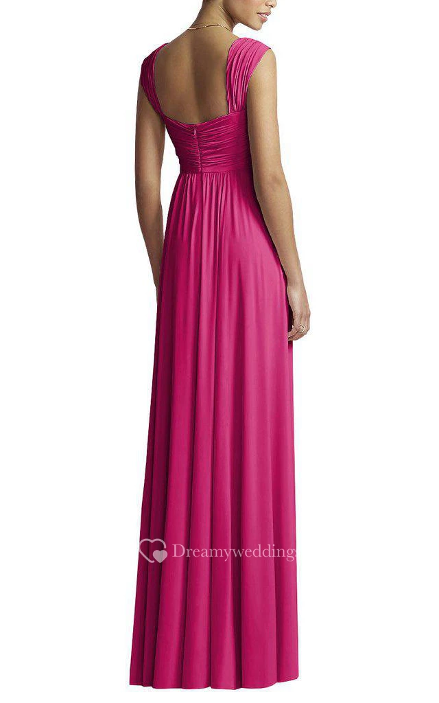 Square Neck Cap Sleeve Ruched Long Bridesmaid Dress