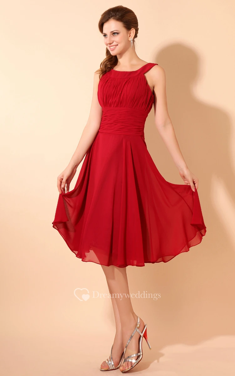 This short dress is so perfect. I am happy with the price. Such a cheap price and the quality is mind-blowing. I like it for the vertical ruching on the bust. It imparts a unique look to the dress. Short length is another attraction. This style suits my choice. Chiffon fabric is so lightweight, thick and soft. It is perfectly knee length for me. Such a playful dress in gorgeous color!! Love it!