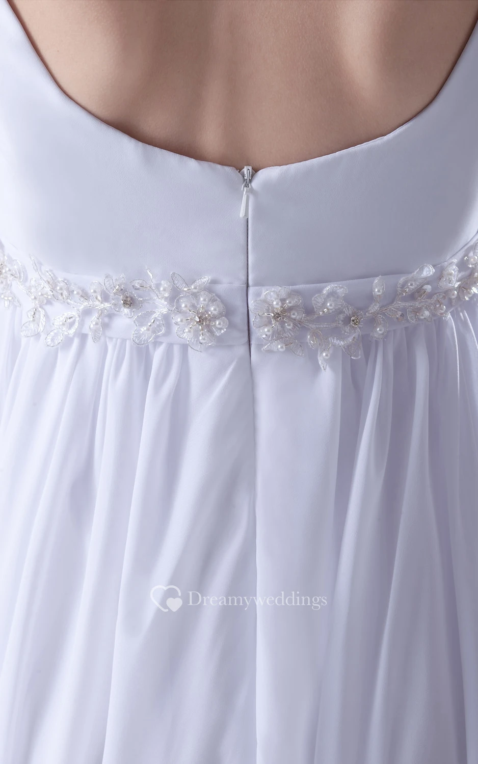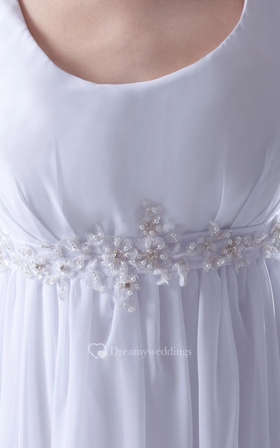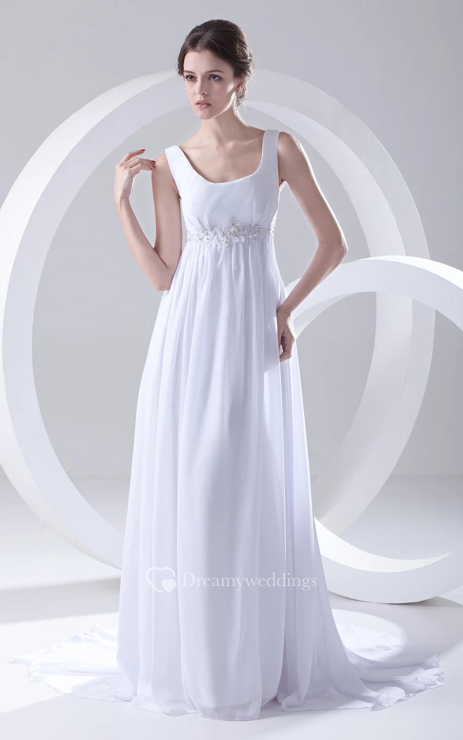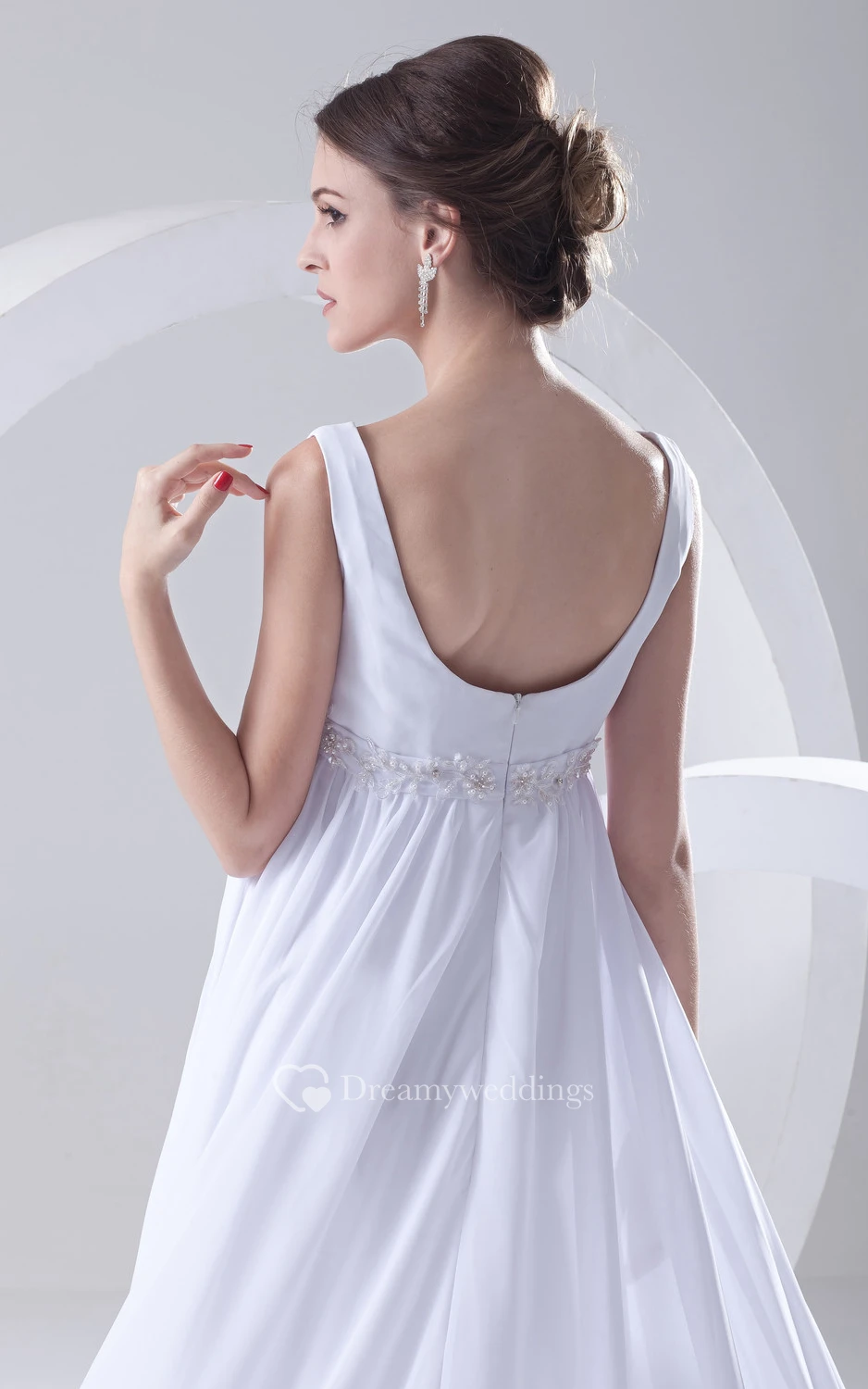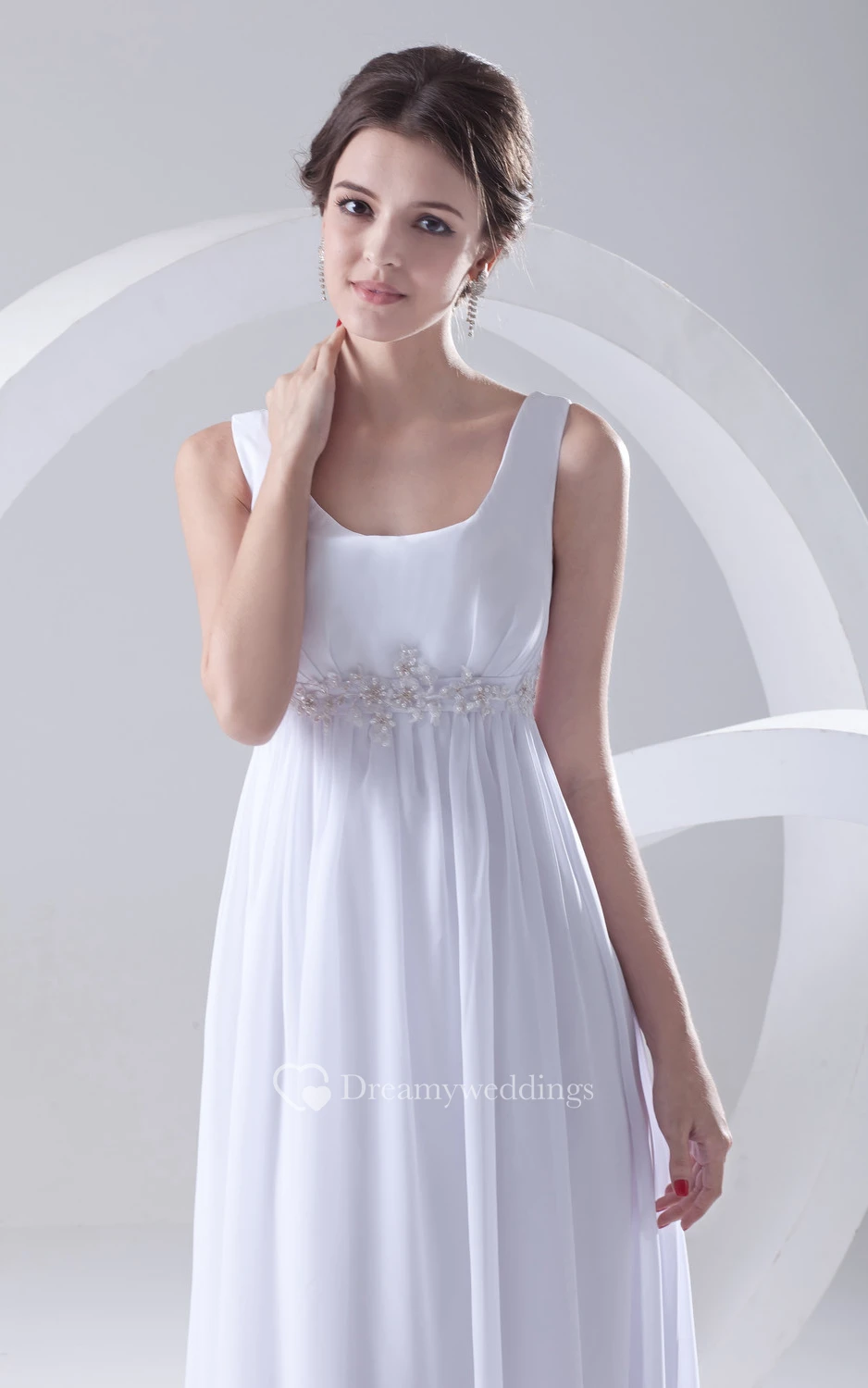 Square-Neck Empire Chiffon Dress With Beaded Sash