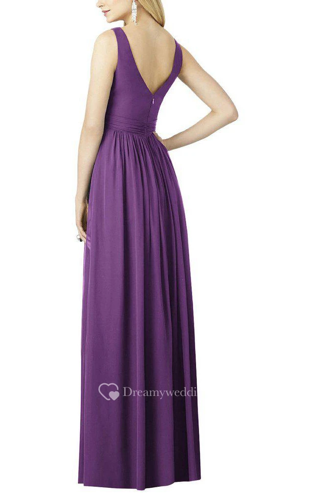 Square Neck Strapped Long Bridesmaid Dress with Ruching
