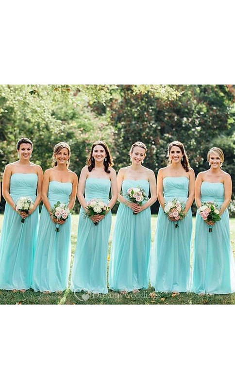 Strapless A-line Floor-length Chiffon Dress with Pleats