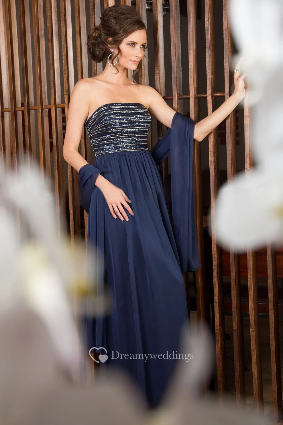 Strapless A-Line Gown With Shawl And Beaded Bodice