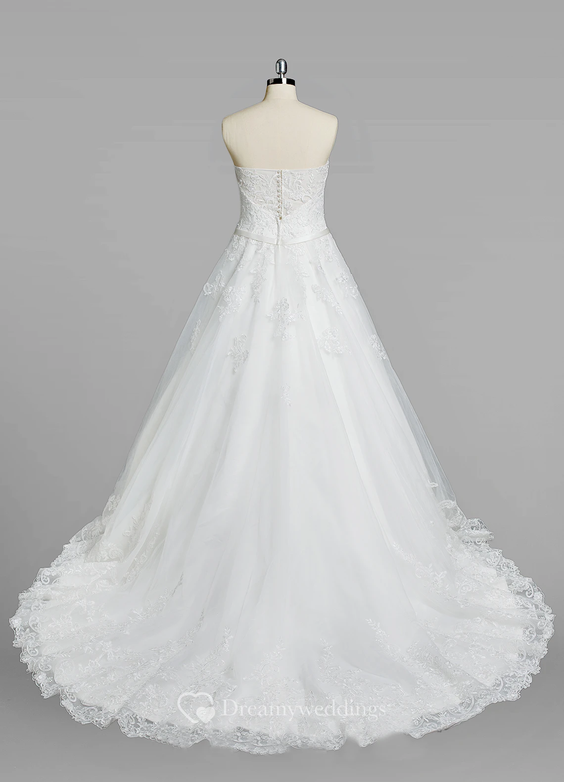 Strapless A-Line Lace Wedding Dress With Satin Belt