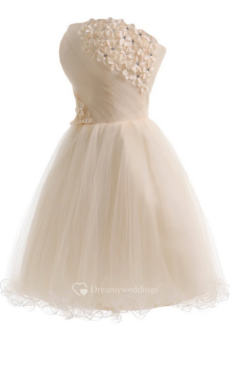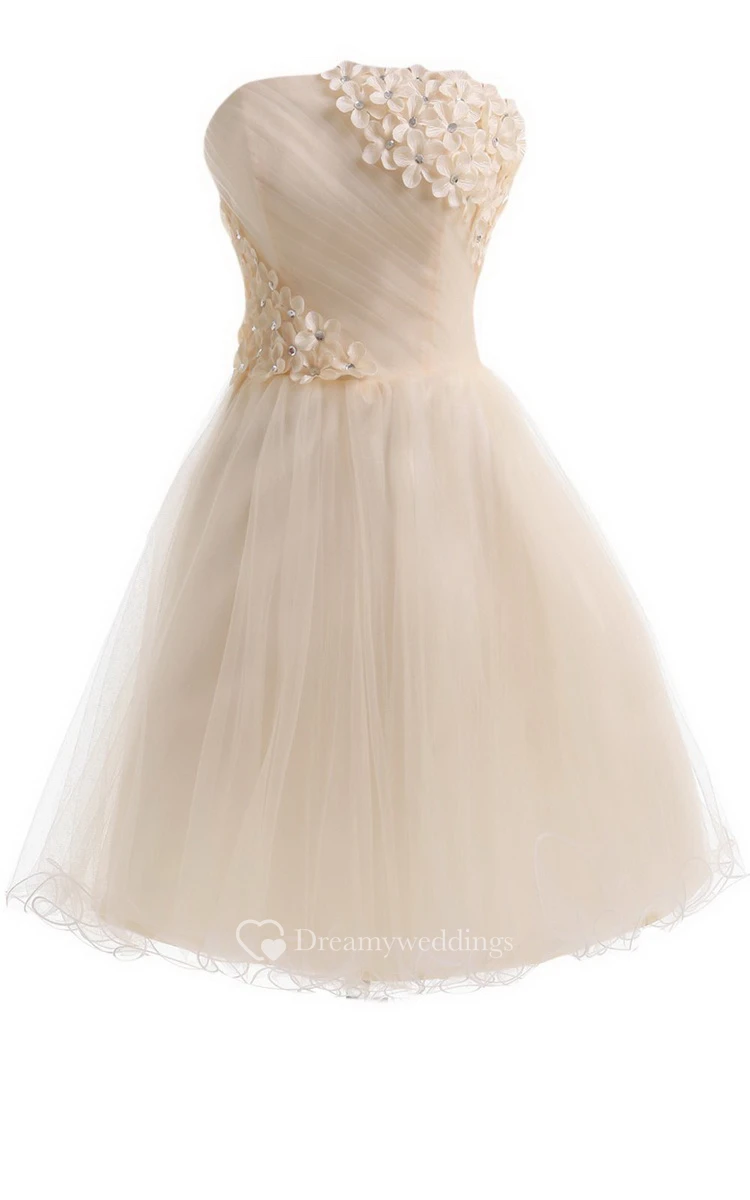 Strapless A-line Mini Dress With Flowers and Beadings