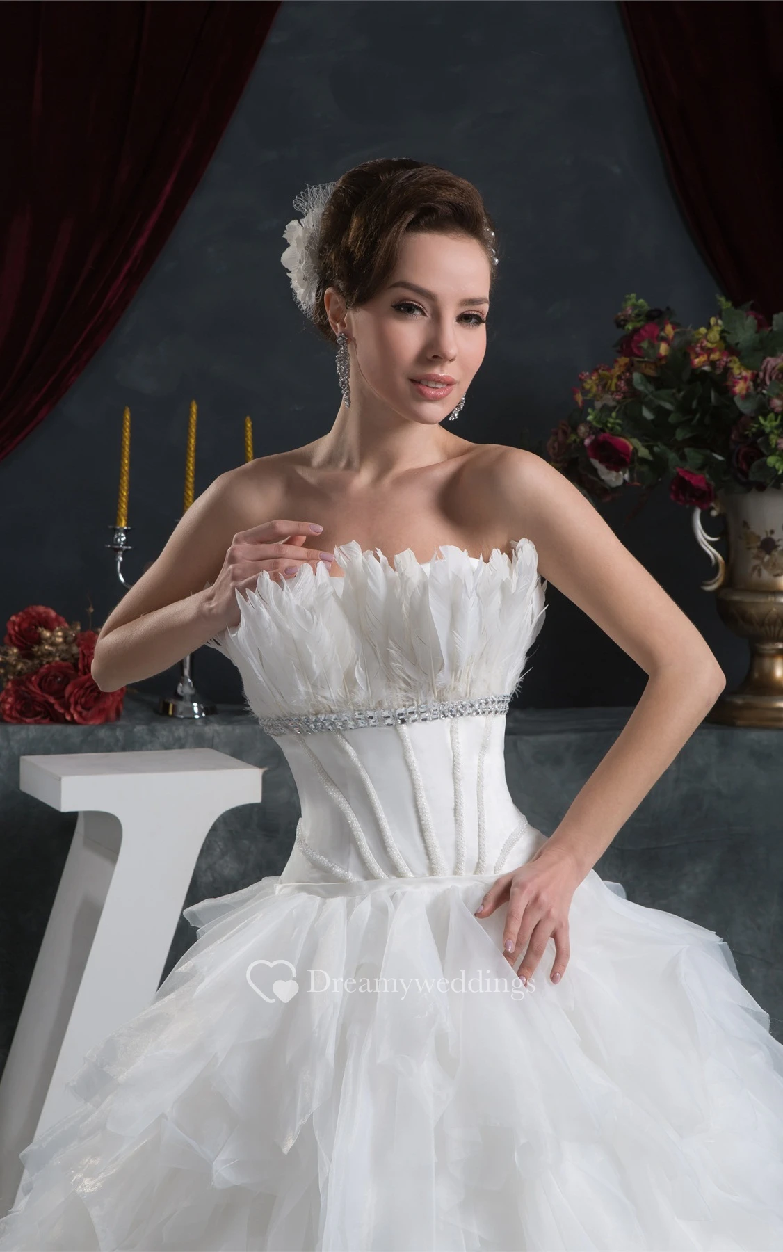 Strapless A-Line Ruffled Jeweled Waist and Gown With Tiers