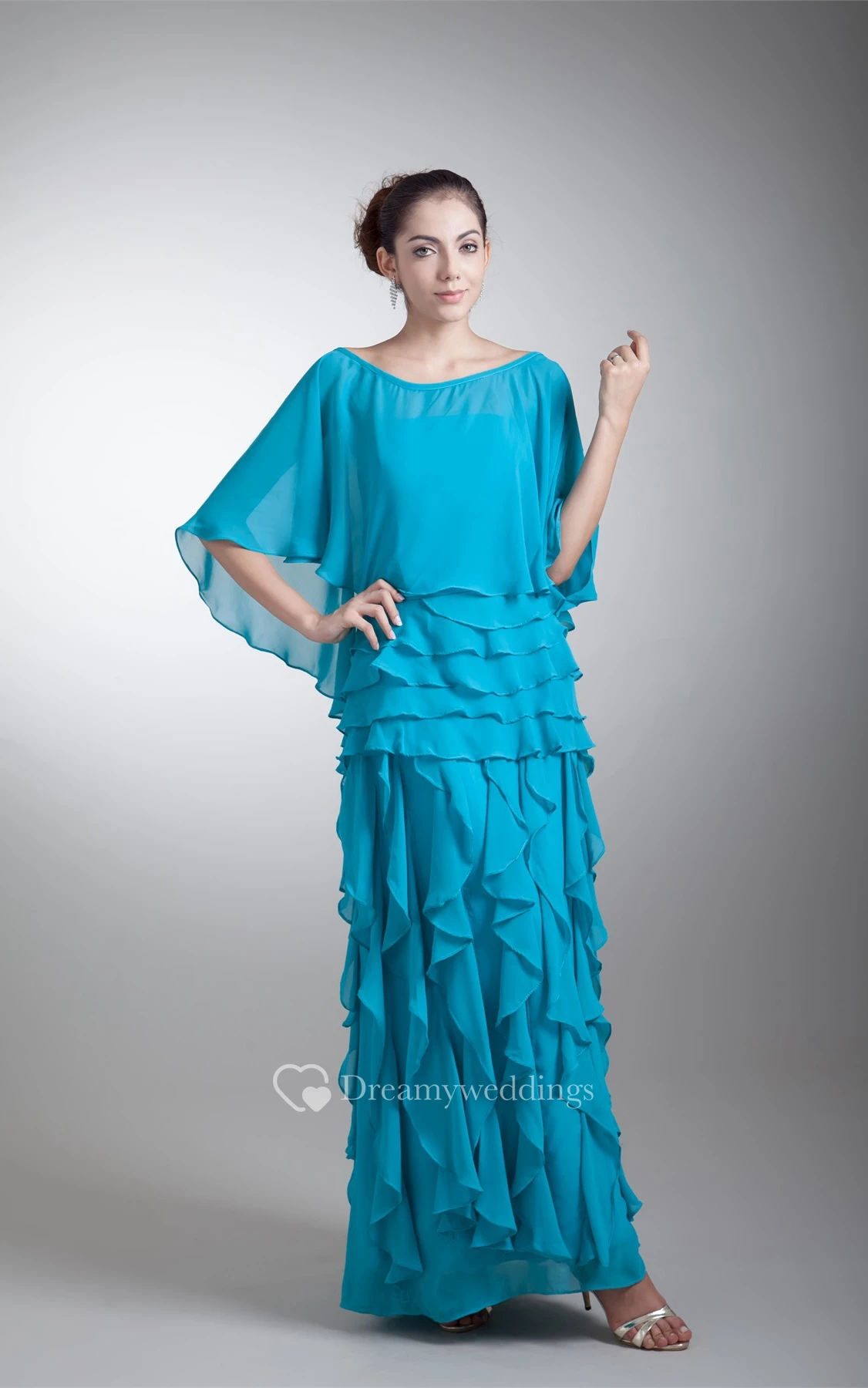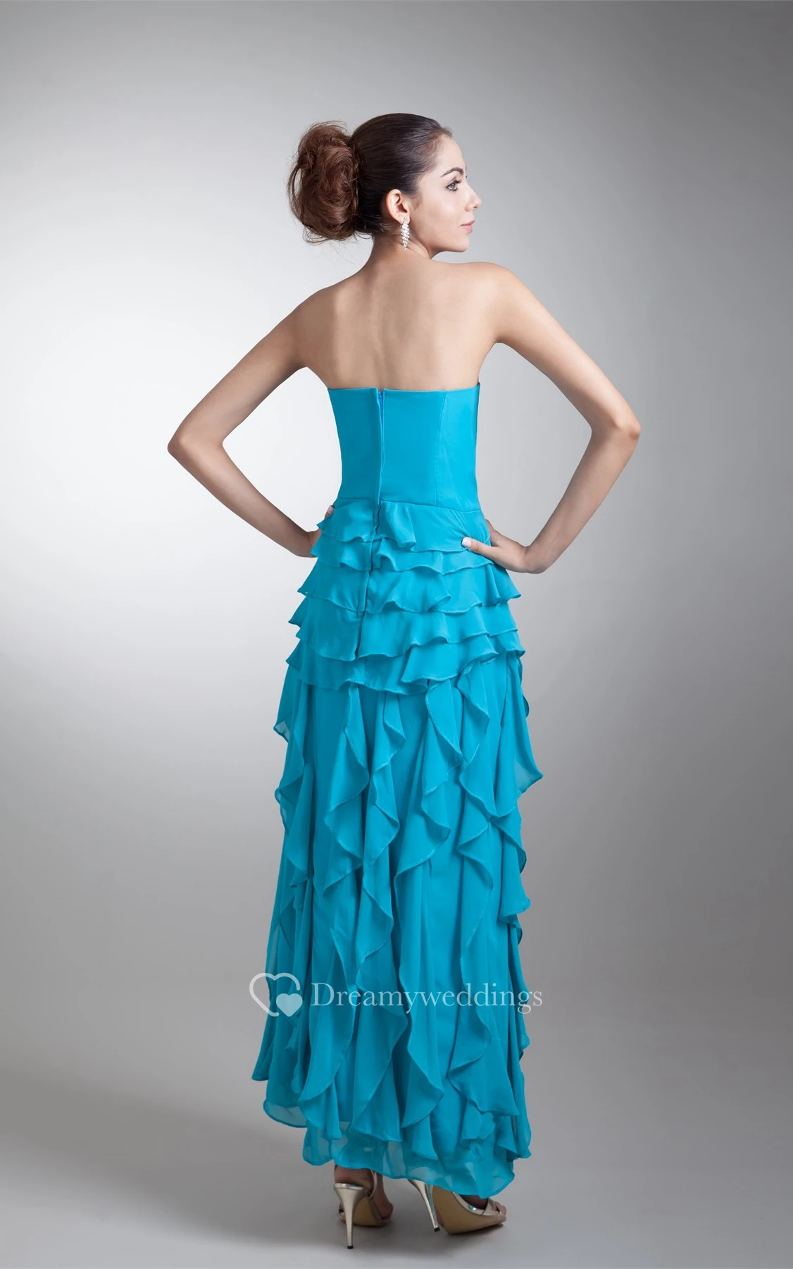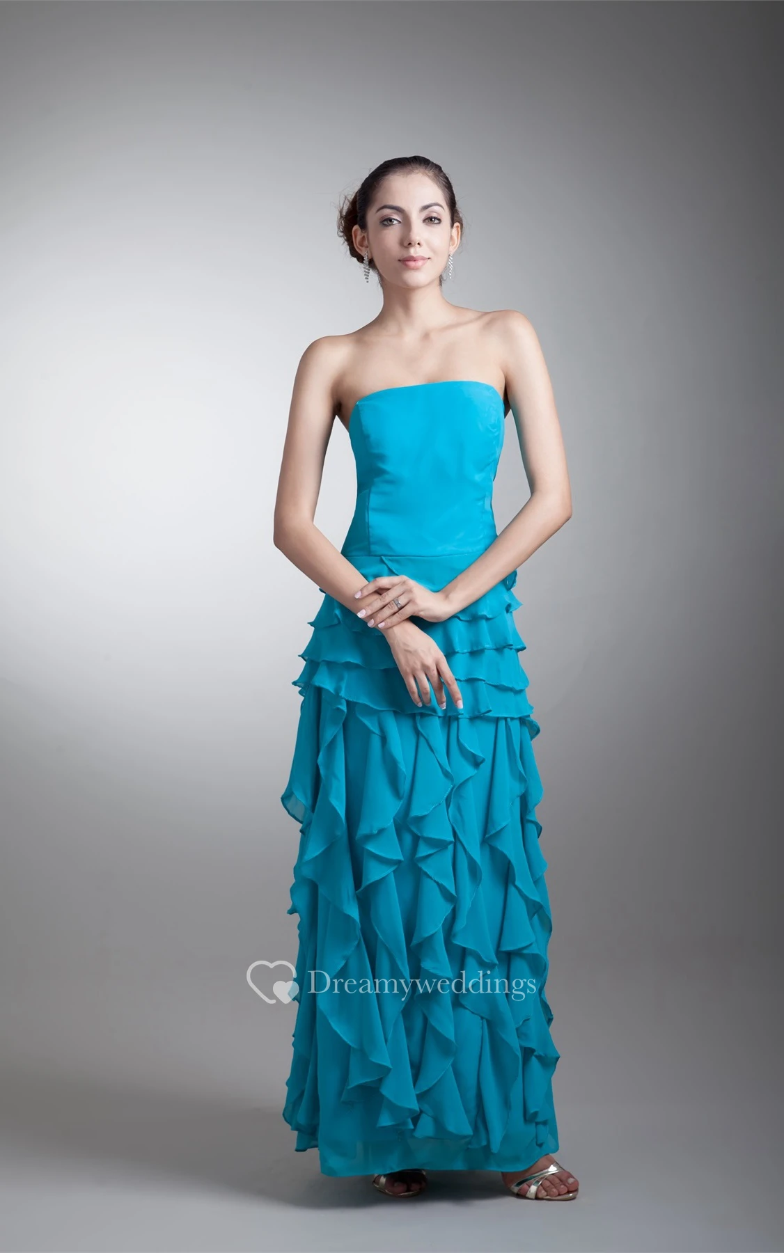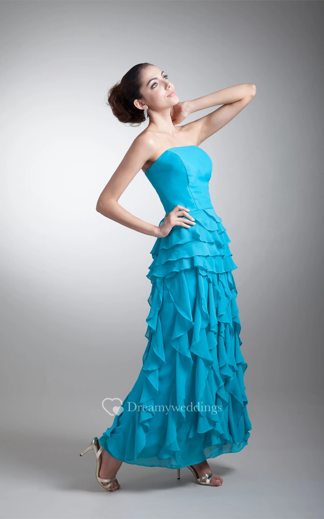 Strapless Ankle-Length Chiffon Dress With Cascading Ruffles