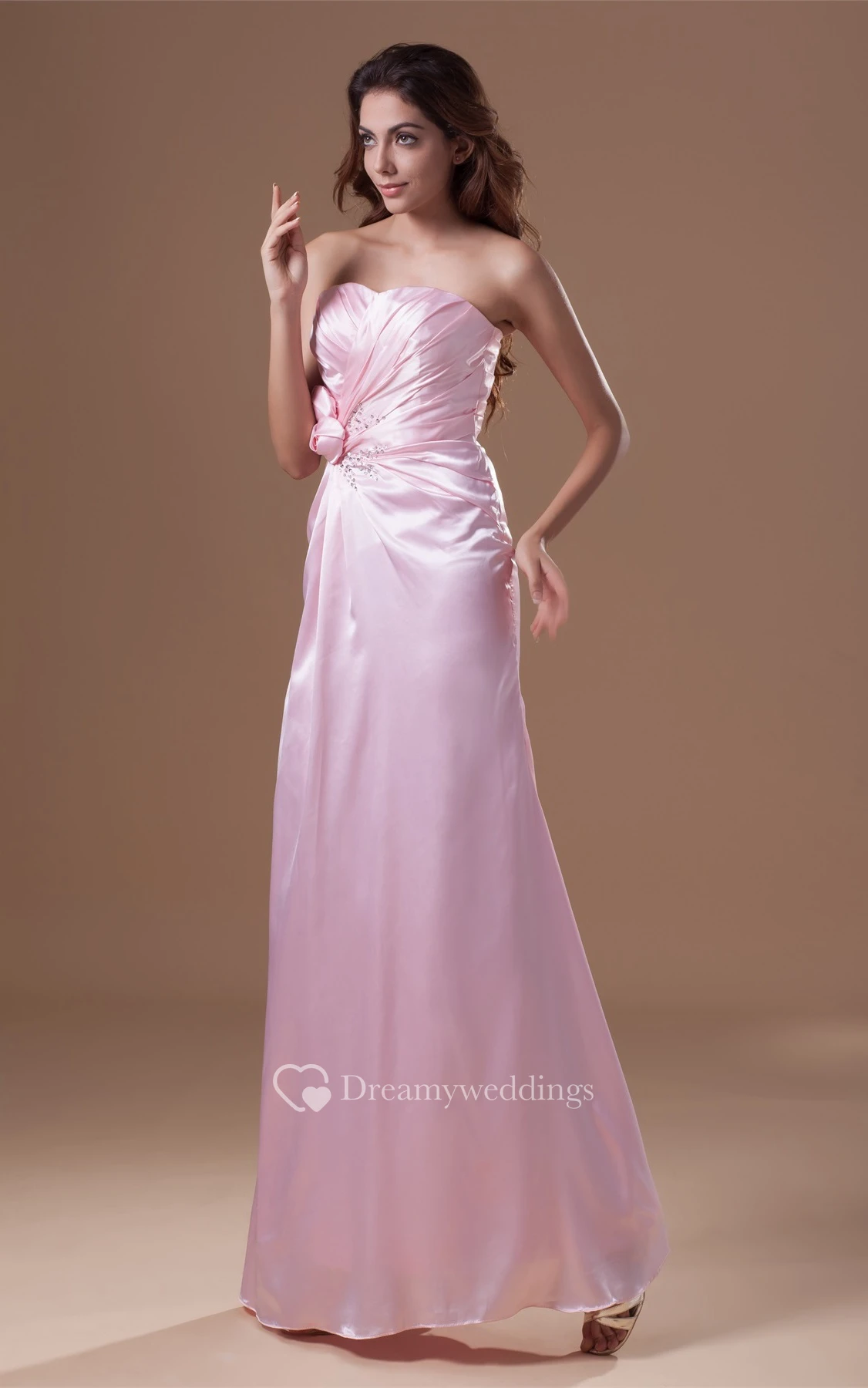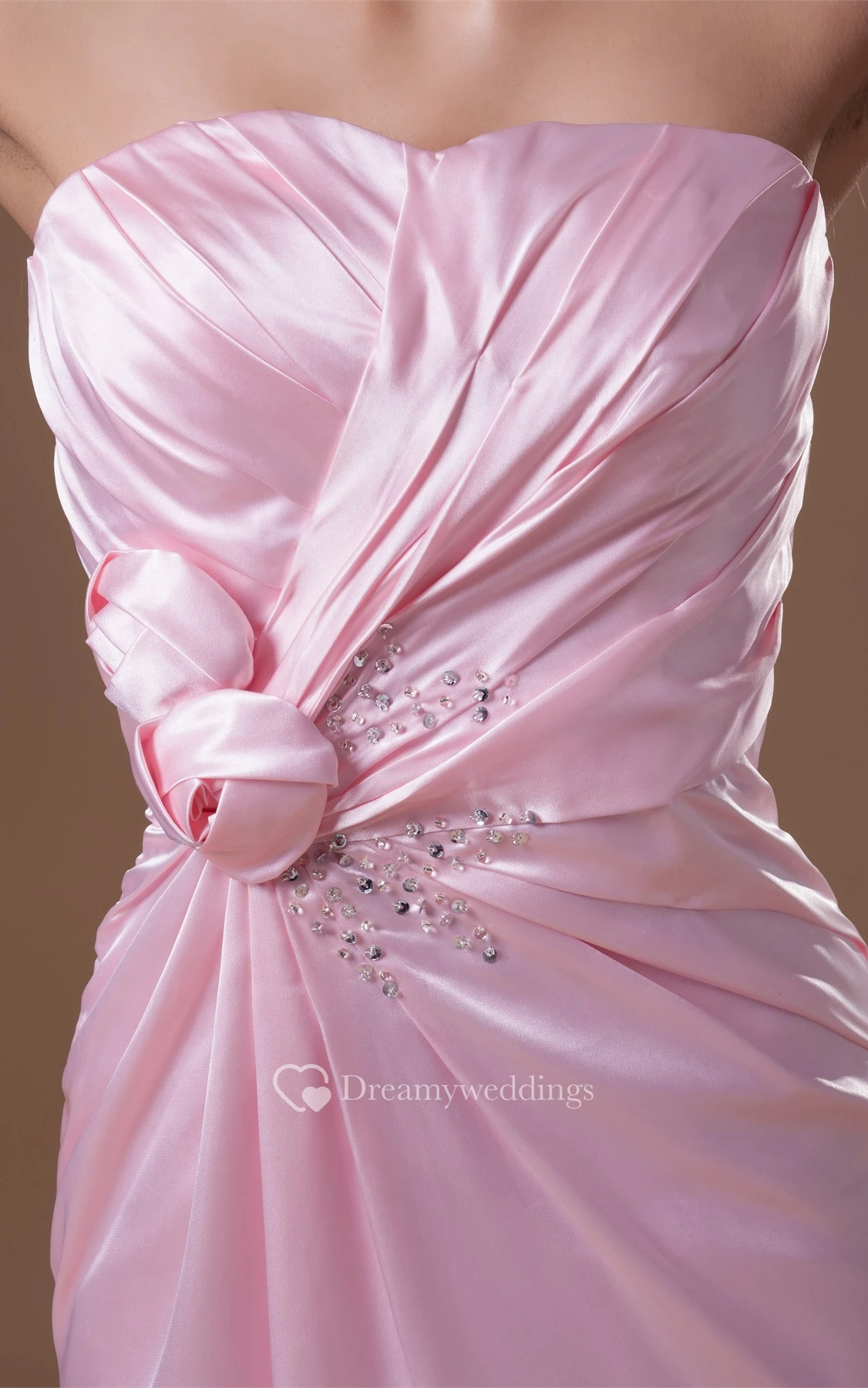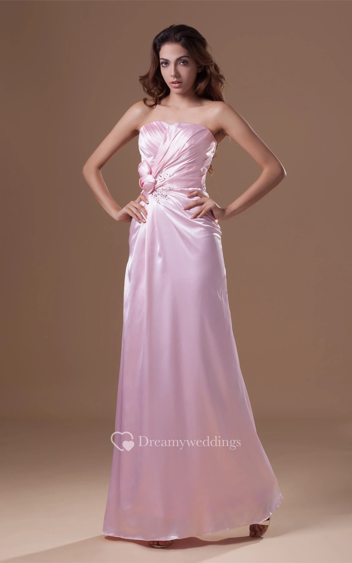 Strapless Ankle-Length Satin Beading and Dress With Flower