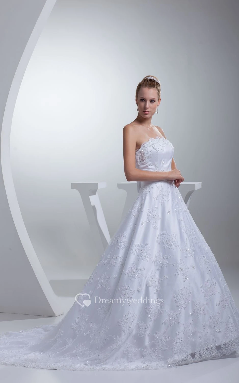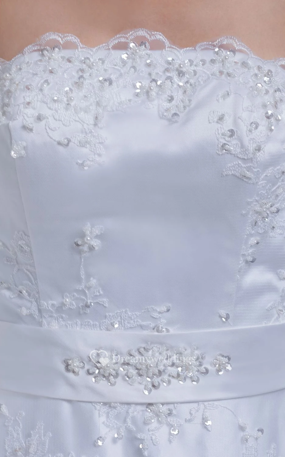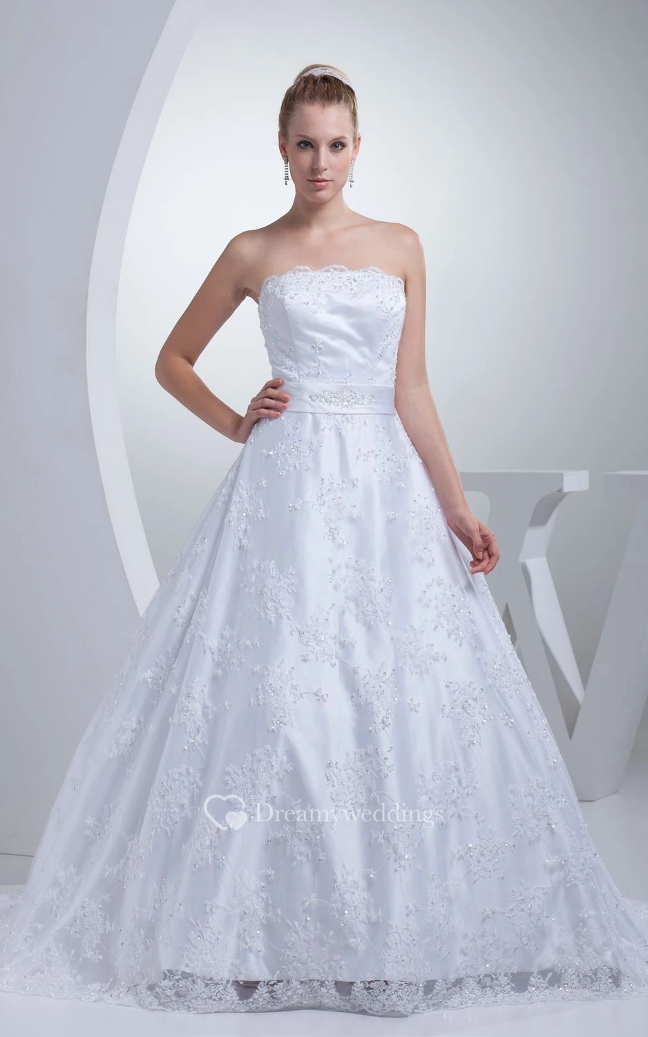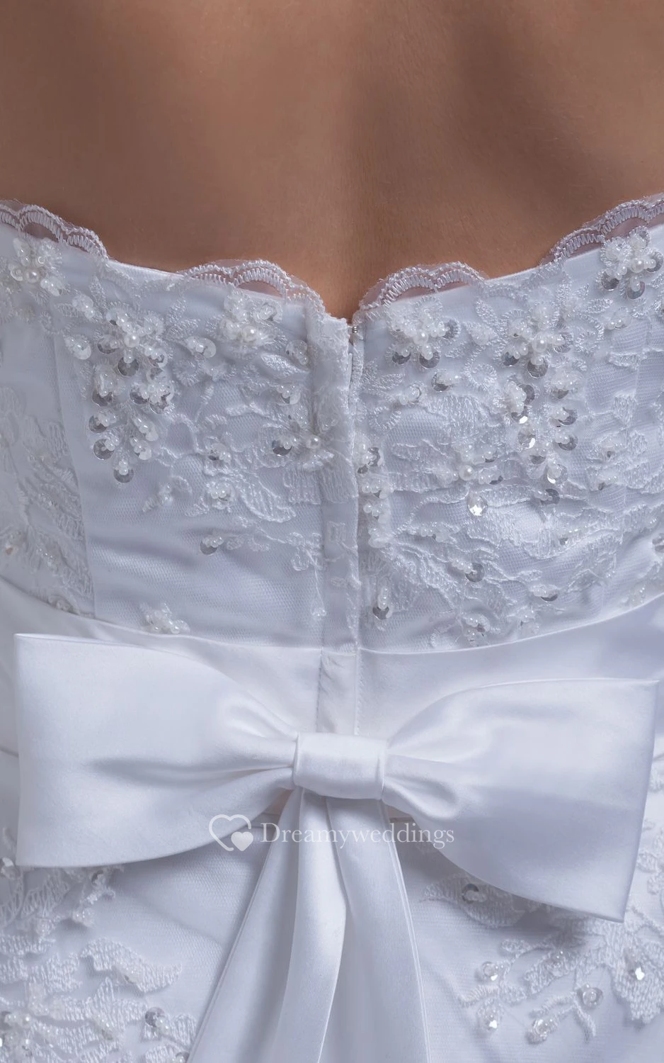 Strapless Appliqued A-Line Gown With Bow and Beading