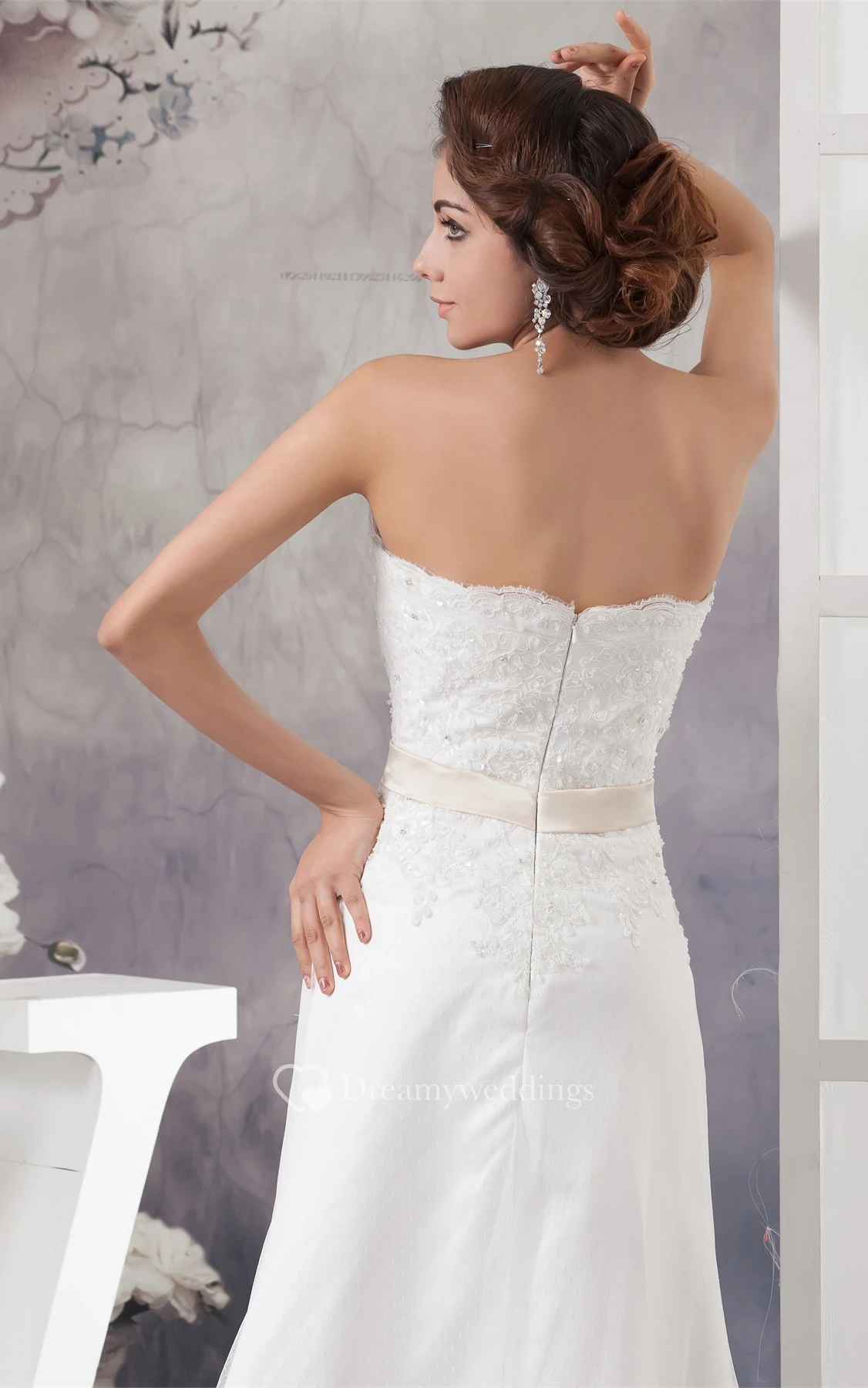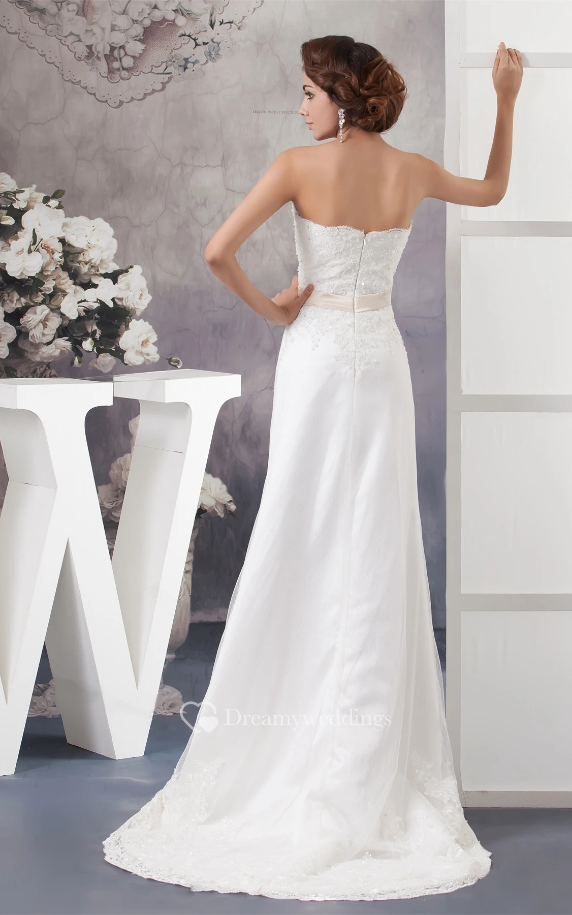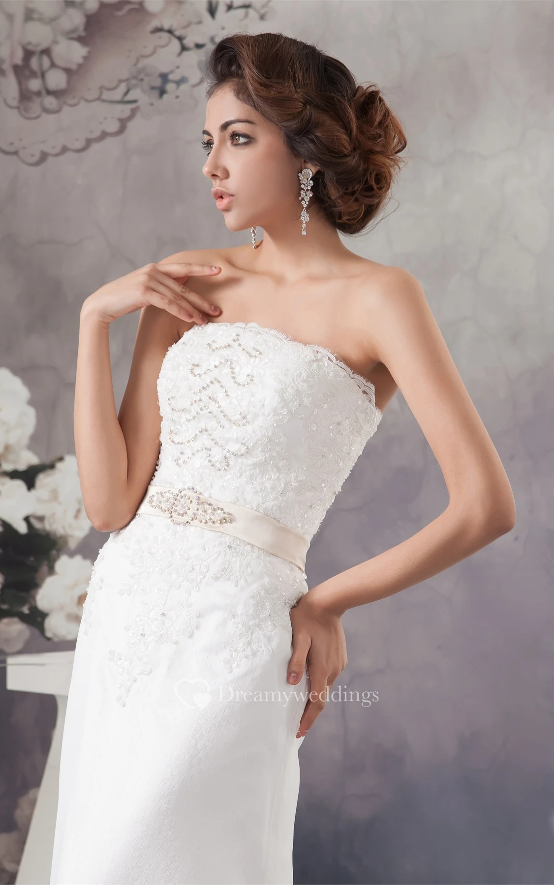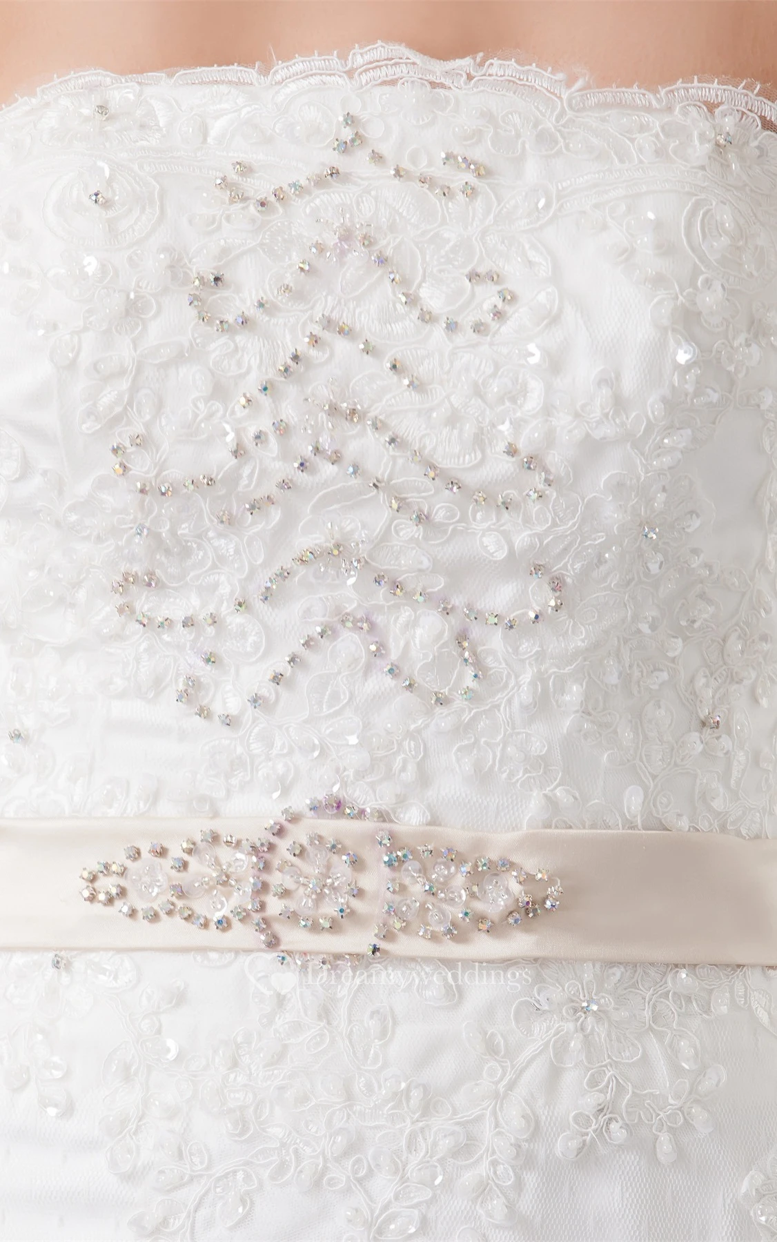 Strapless Beaded A-Line Sweep Train and Dress With Lace