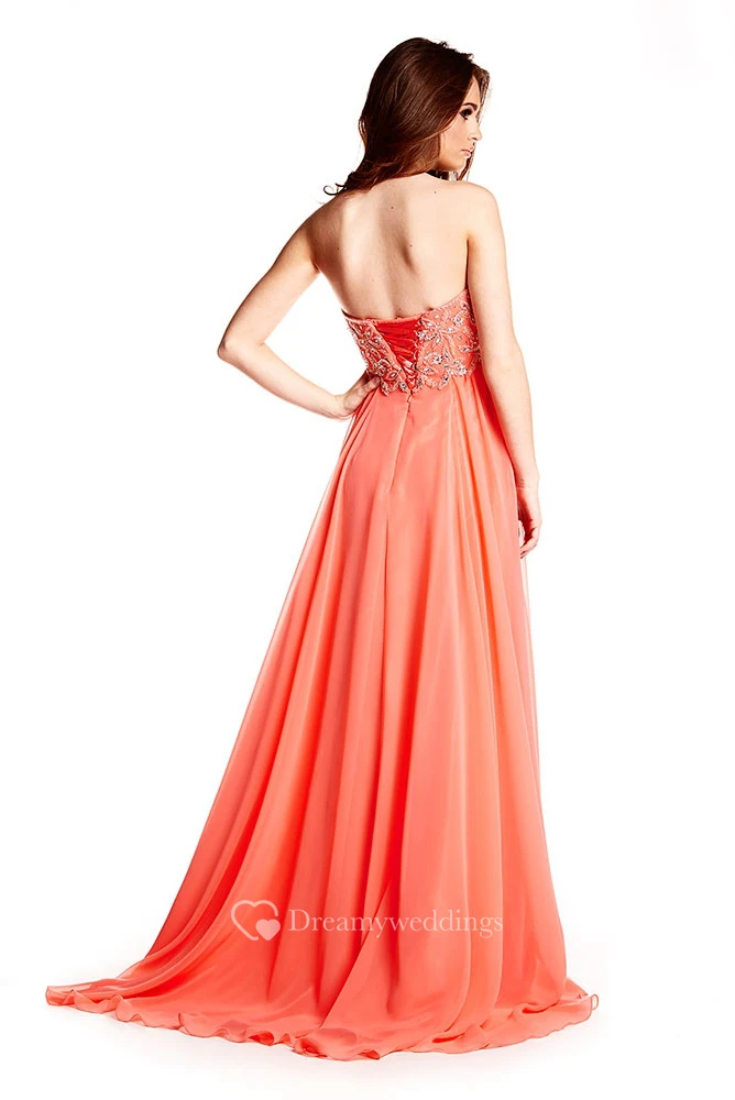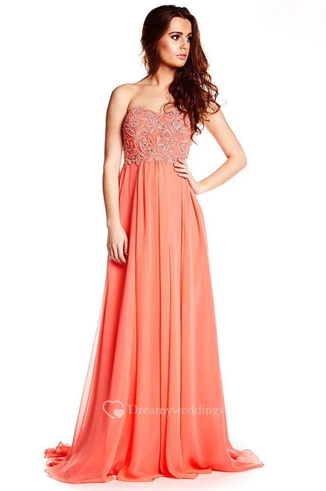 Strapless Beaded Chiffon Prom Dress With Brush Train