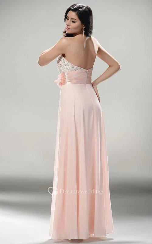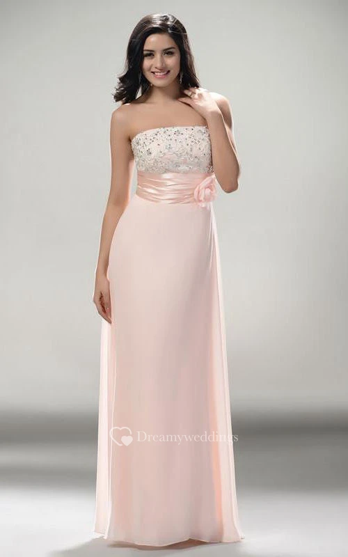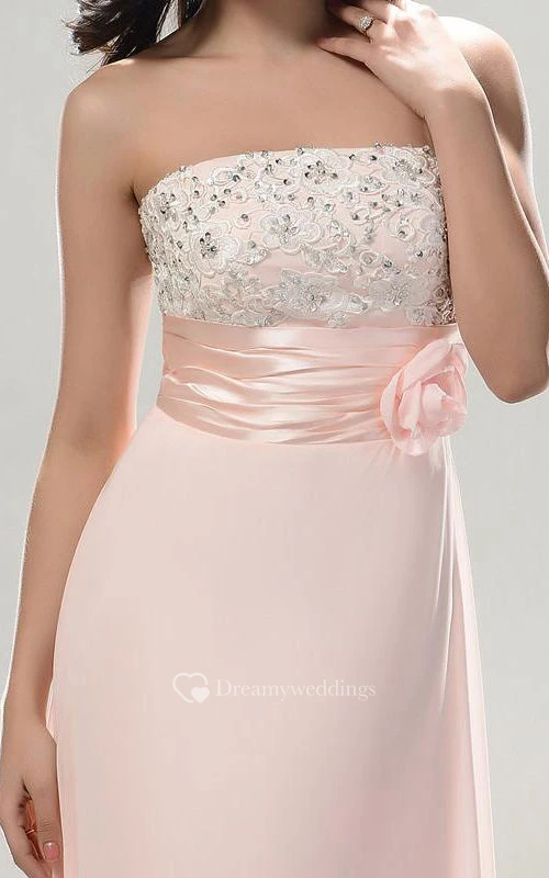 Strapless Beaded Empire Column Shape Floor Length Skirt with Hamdmade Flower Decoration Beautiful Prom Dress