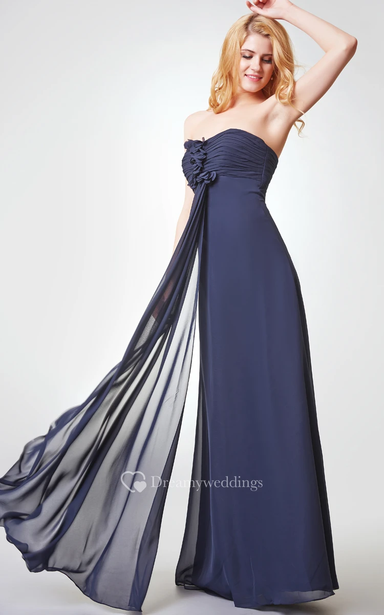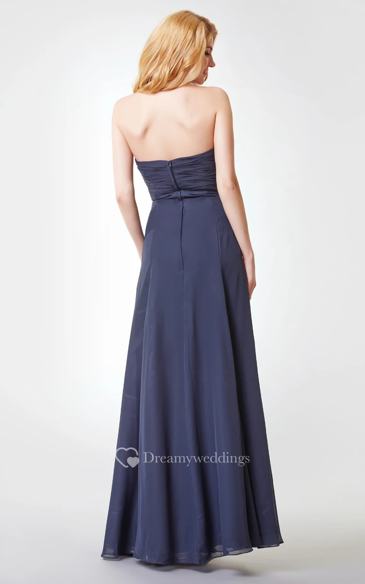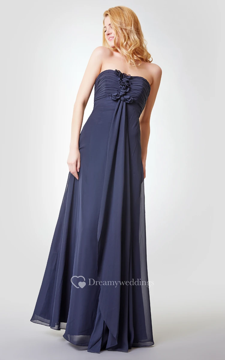 Strapless Draped A-line Long Chiffon Dress With Ruching