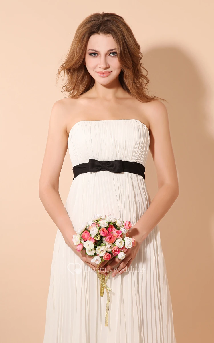 Strapless Empire Chiffon Dress With Satin Sash and Pleating