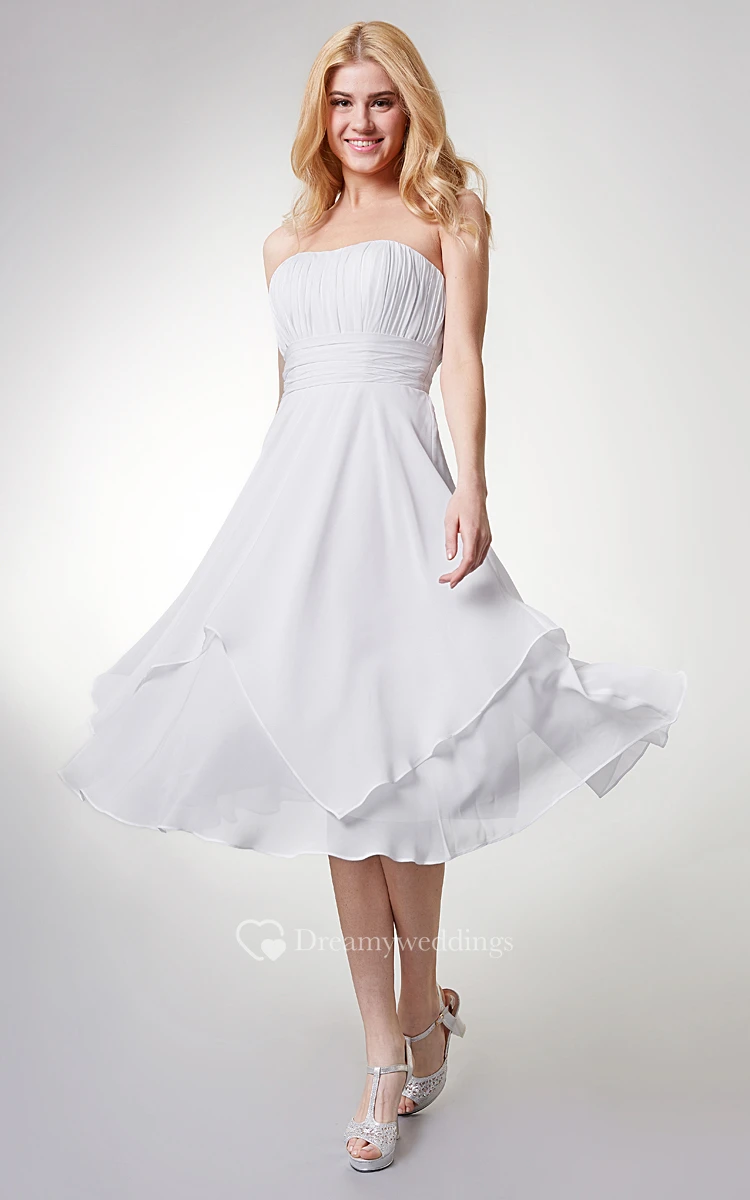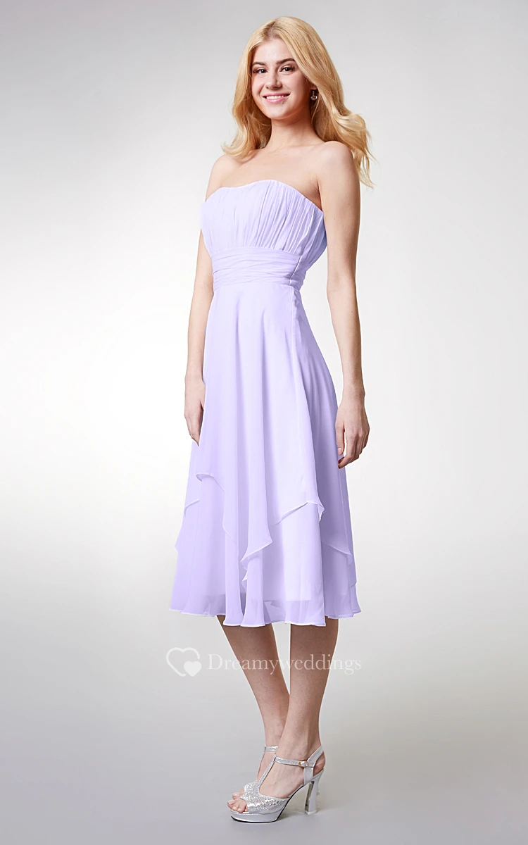 Strapless Empire Tea-length Layered Bridesmaid Dress