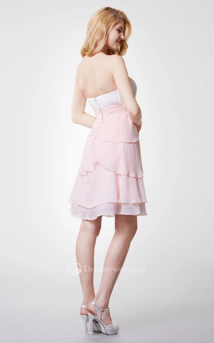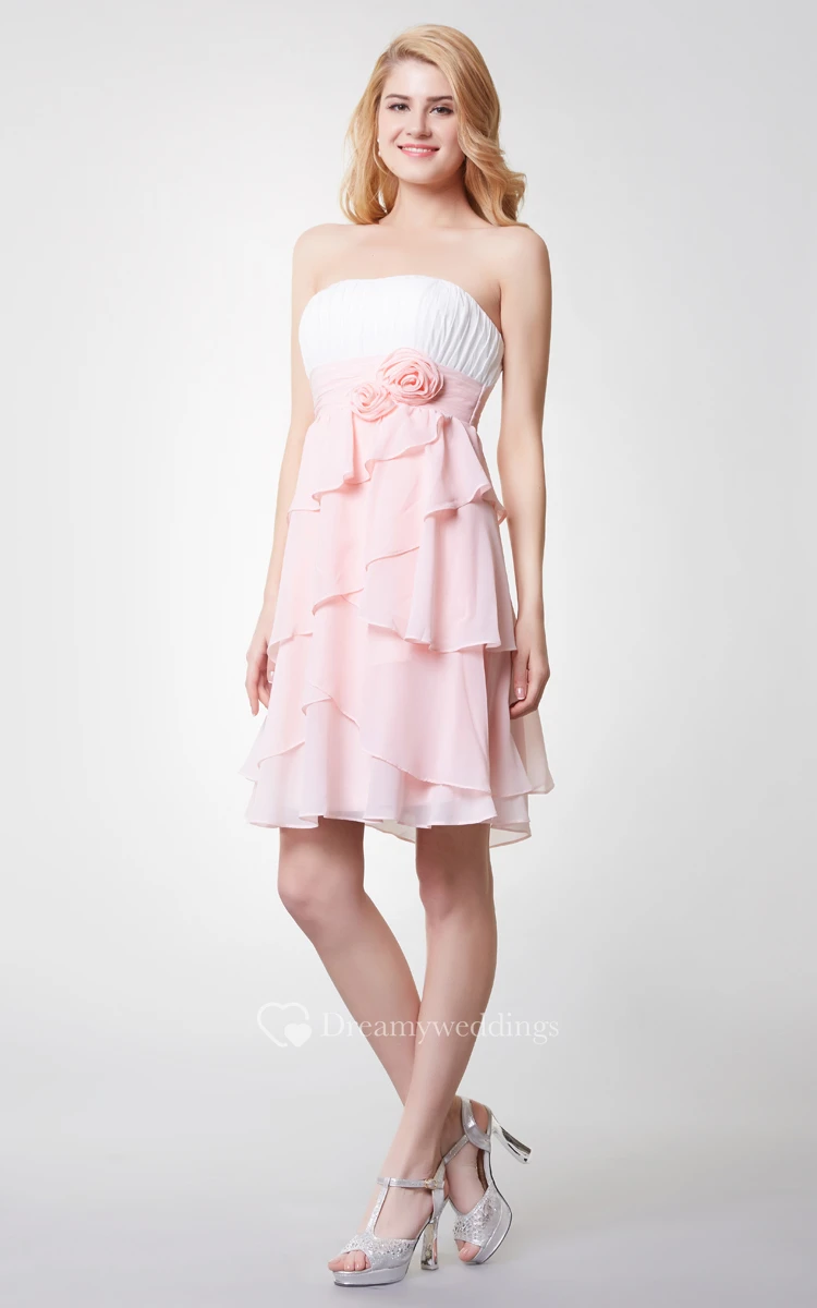 Strapless Empire Tiered Short Chiffon Dress With Ruching