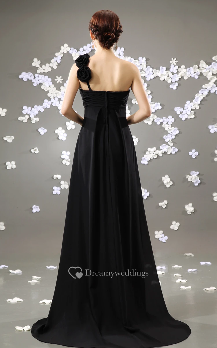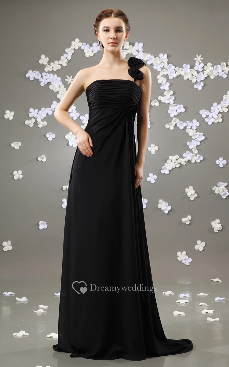 Strapless Floor-Length Dress With Pleating and Brush Train